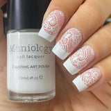 Maniology stamping polish is 5-free! We want you to look beautiful and stay beautiful, so our nail stamping polishes are made without 5 of the most common toxic chemicals found in most nail polishes. For more information, visit our FAQs page!
