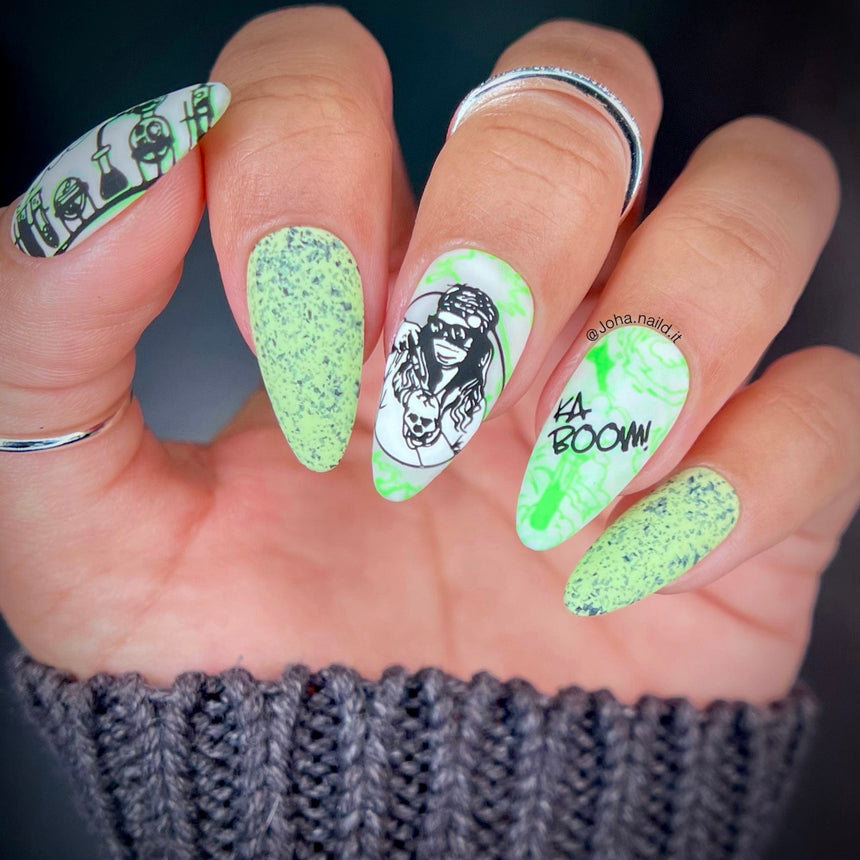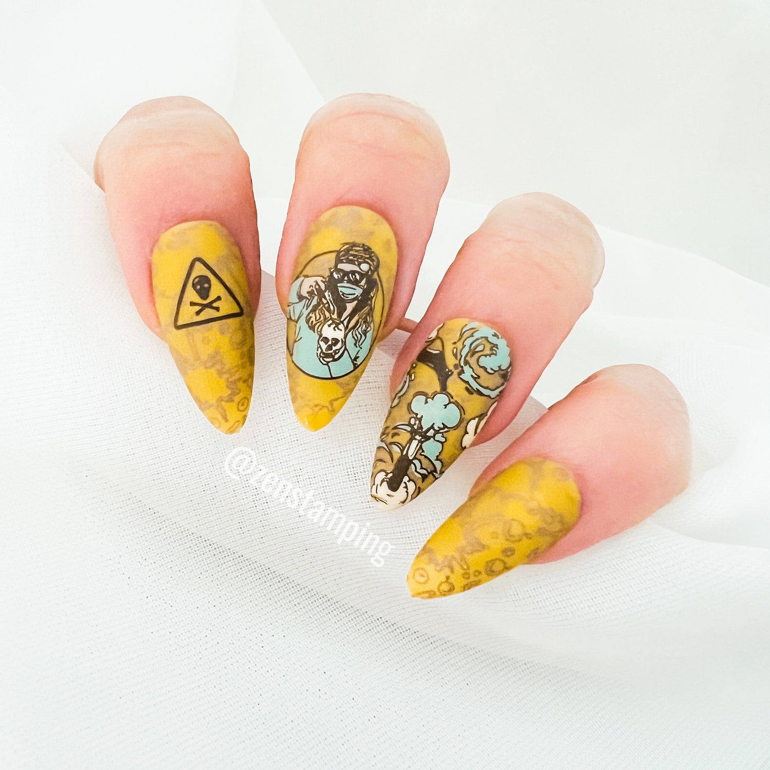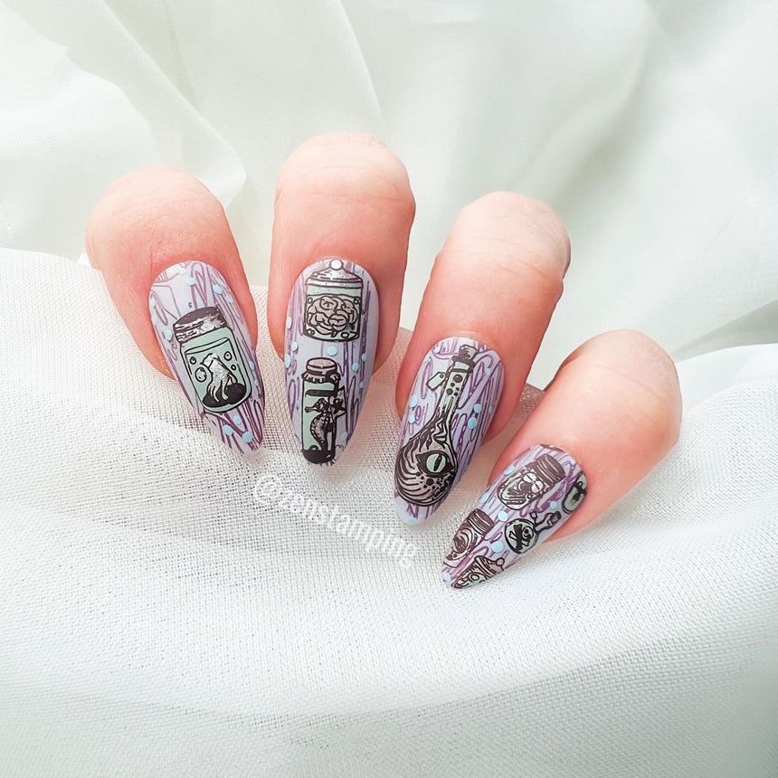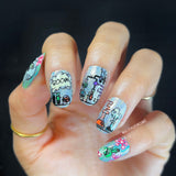 Let's do a little nail experiment...! Explore your strange curiosities with our Mad Scientist (m331) stamping plate. From DNA strands to laboratory equipment, this plate features fizzy-fun designs perfect for showing off your love for science. So get ready to experiment and mix up some magic for a bubbly-blast nail art!