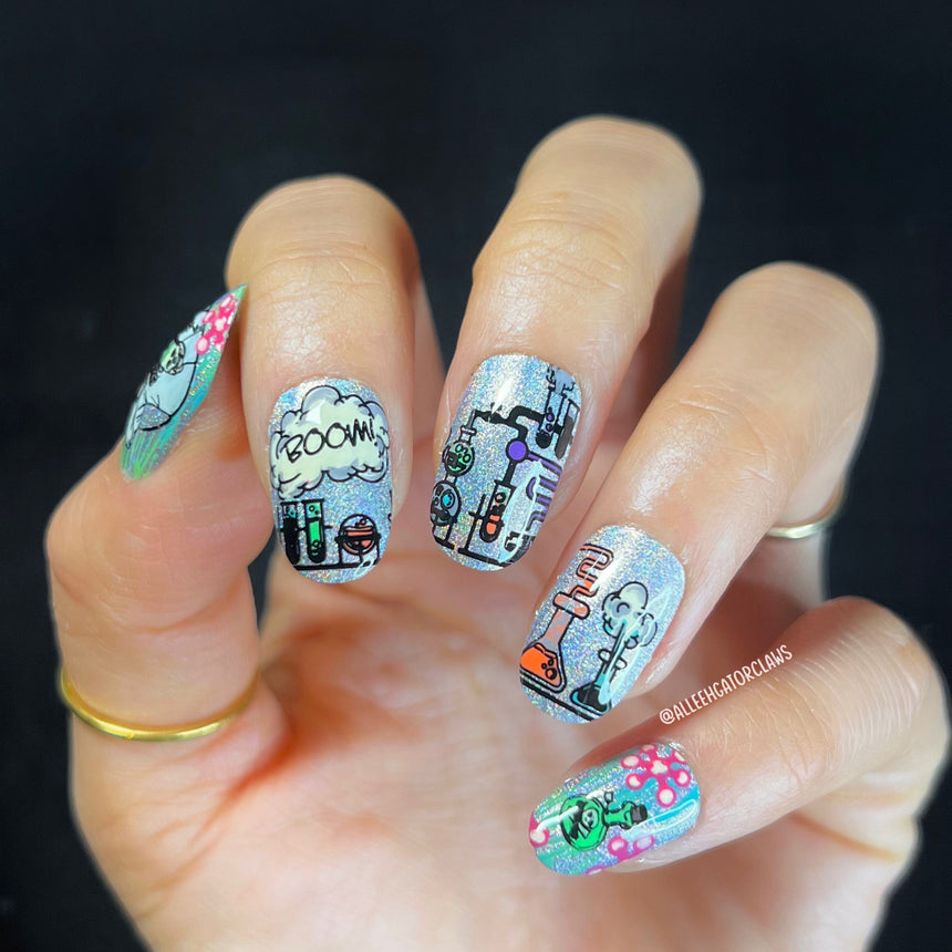 • CRAZY FOR SCIENCE: It's time to get a little mad with your nails and this lab-inspired stamping plate.