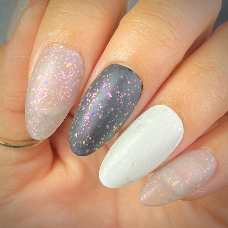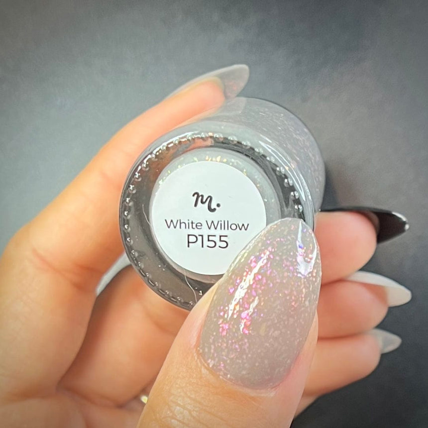 Embrace the calm and let your nails breathe serenity with White Willow (P155). This grey jelly flakies polish echoes the ethereal beauty of the forest. Swipe just a single coat to add just a touch of flakies or build it up for a manicure that's truly breathtaking.