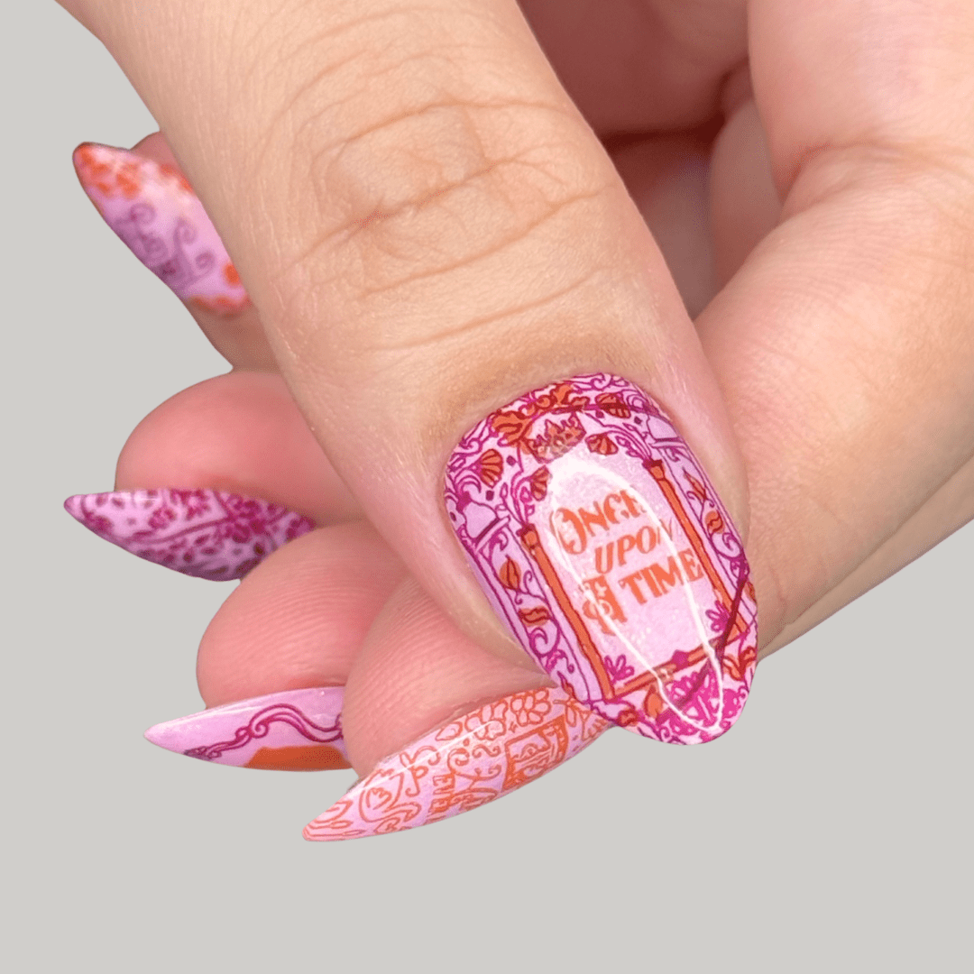 No glass slipper required—just your nails and a bit of fairy-tale magic. It’s time to write your own fairy tale! Our Happily Ever After stamping plate brings to life the romance and wonder of fairy tales. With charming designs featuring elegant floral backgrounds, royal crown, dreamy castle, magic mirror, enchanted rose, and even storybook-inspired phrases. you’ll have all the designs to create dreamy, fairy tale nails as magical as any happily-ever-after ending. Perfect for wedding nails, engagement parties, or whenever you want to feel like royalty, these designs will add that enchanted charm to your look.