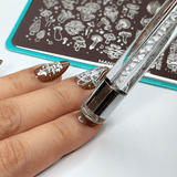 Start small but dream big! We'll help you get that little stamp right where you want it. Our Dual-Ended Pencil Stamper and Clean-Up Brush stamp the tiniest details with accurate precision. Pick up small accent designs or target specific areas of larger images with our tiniest stamper yet. The opposite end of this stamper features a flat angled clean-up brush to help you wipe away excess paint from your skin and cuticle area for faster, prettier manicures!