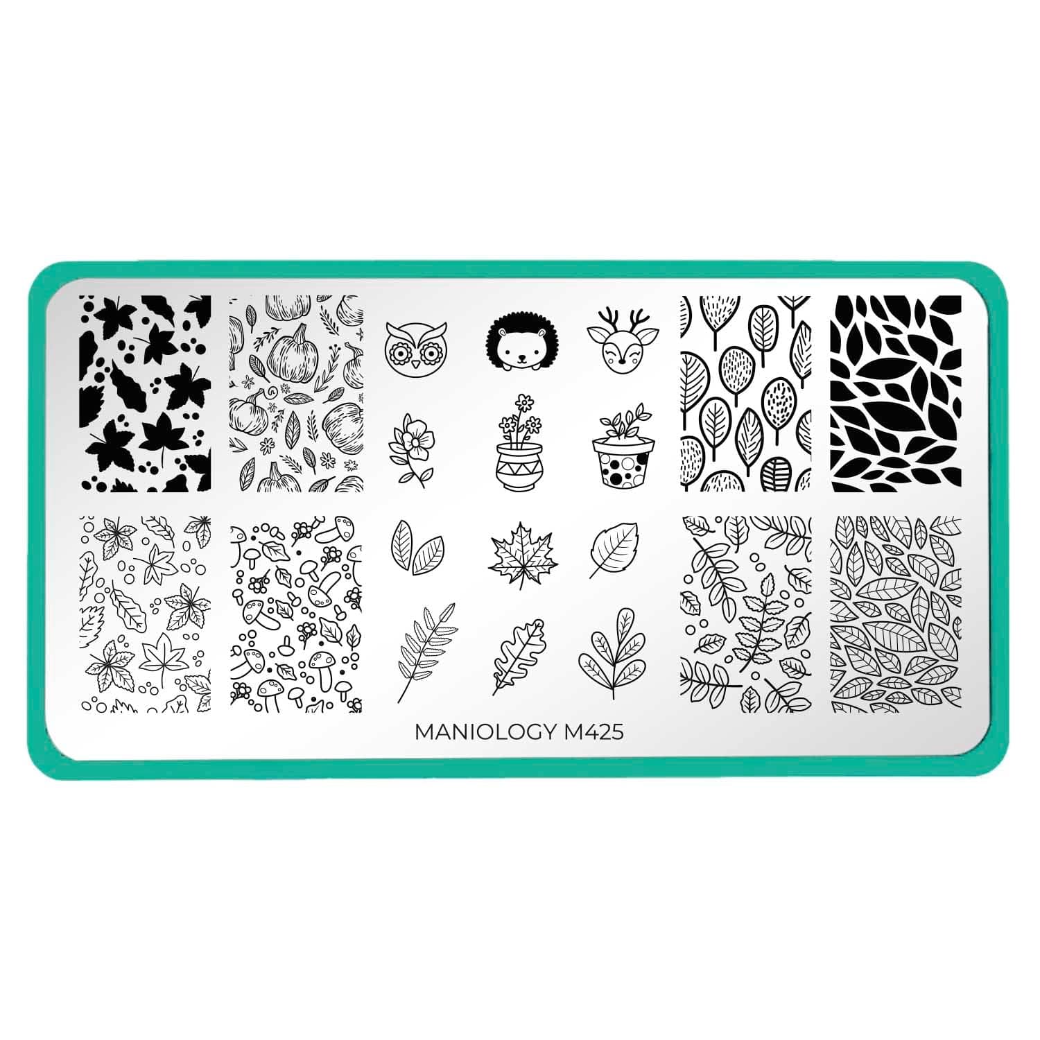 Explore autumn's forest with our Woodland Wonders stamping plate. This fall nail art stamping plate features delightful autumn manicure designs with layerable full nail patterns and small leafy accents. Mix up your manicure with cute forest creatures, fall leaves, autumn harvest, for an enchanting woodland fairy nails!