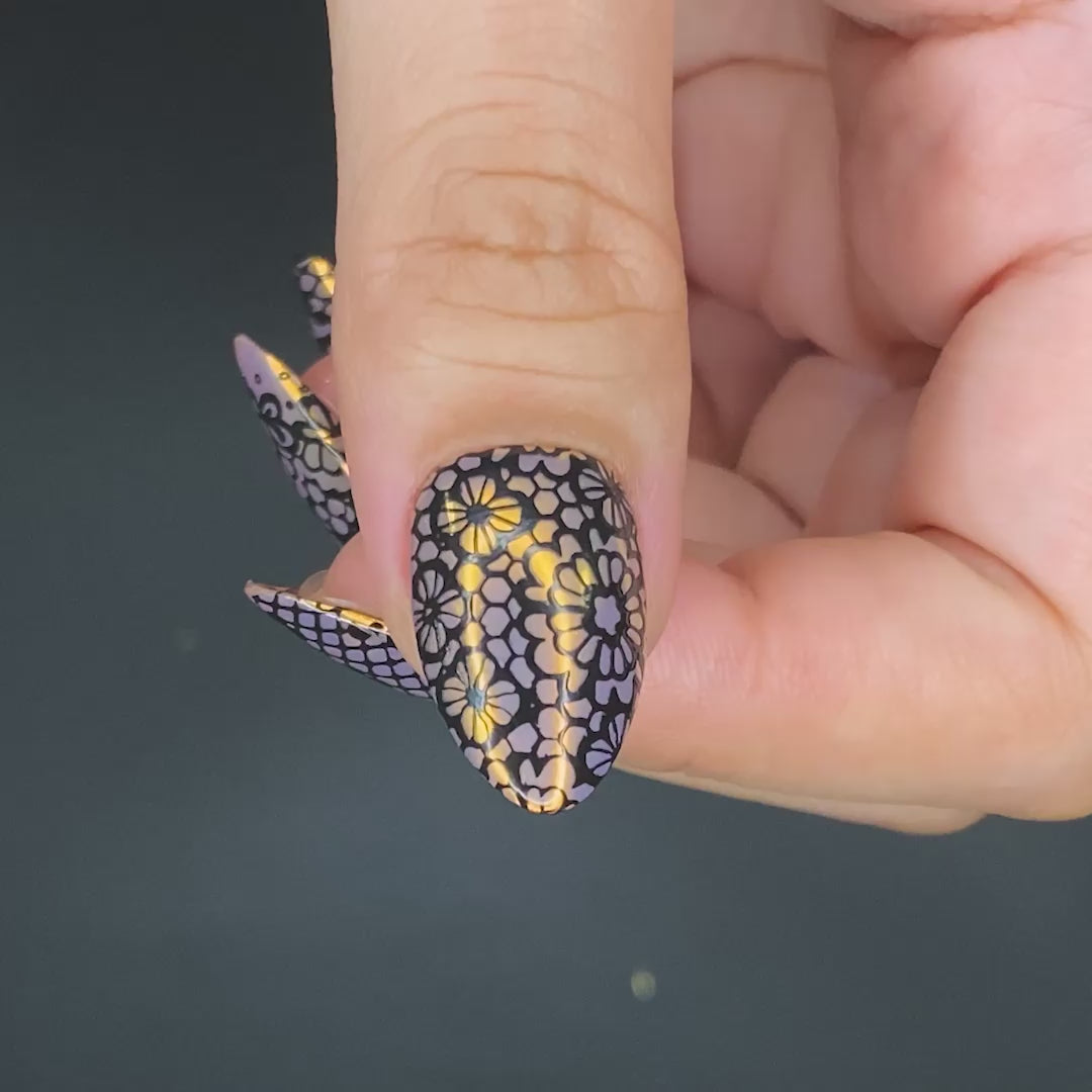 Flaunt a nail art that's laced with perfection. Our Lacey Lovers stamping plate boasts a collection of lace nail designs that are simply stunning. From intricate vintage lace patterns to dainty floral lace manicure accents, these designs are perfect for enhancing your everyday look or bringing an extra flair to special moments. With an array of 12 full nail lace designs, your nails will be adorned in the finest lace.