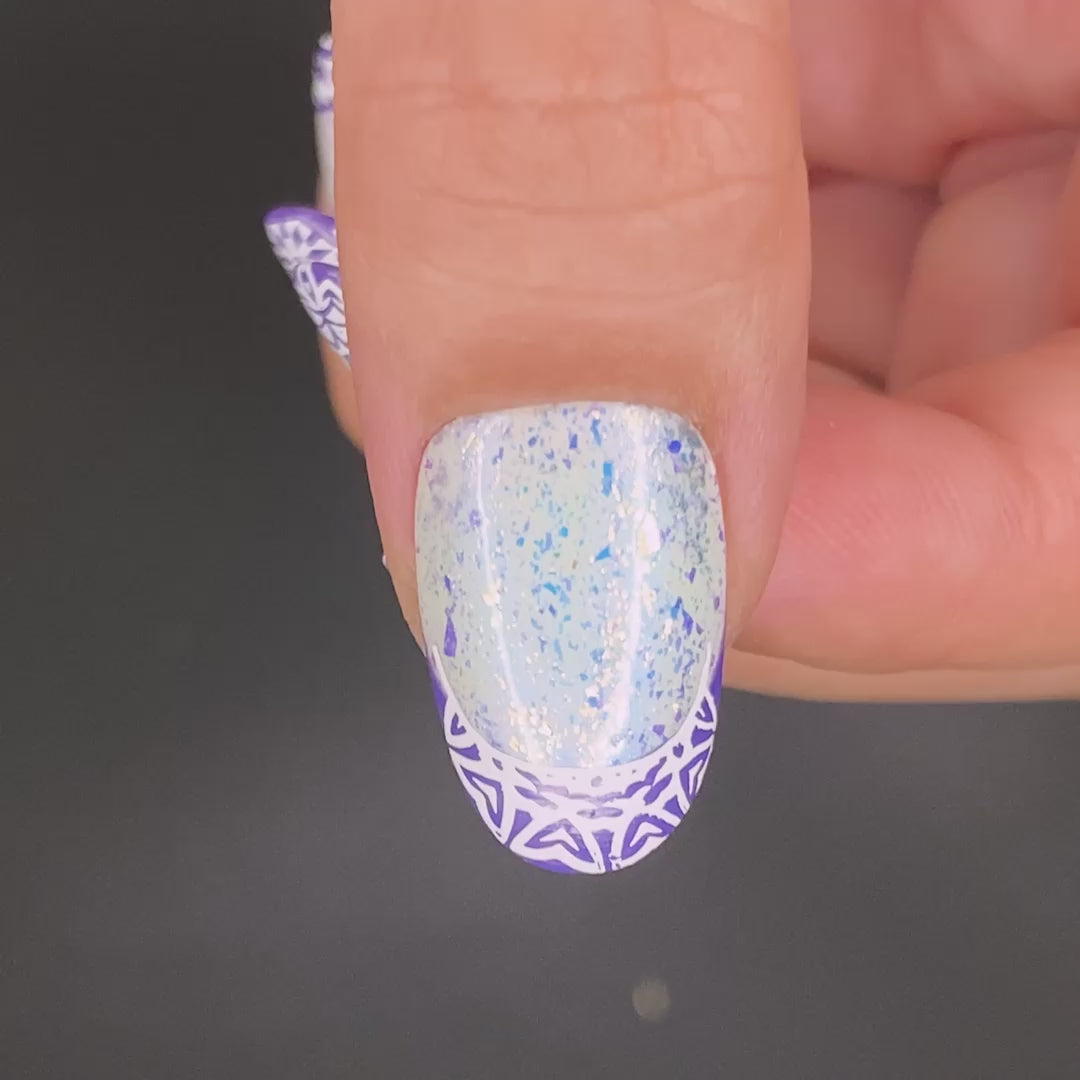 With our Kaleidoscope French stamping plate, chic timeless styles meet modern psychedelia! This fun and funky french manicure stamping plate comes with a stunning array of French tip patterns inspired by the vibrant and lively patterns of a kaleidoscope. From intricate florals to geometric shapes, these kaleidoscope French nail designs bring a touch of artistic elegance to your fingertips, for a manicure that is both refined and uniquely captivating.