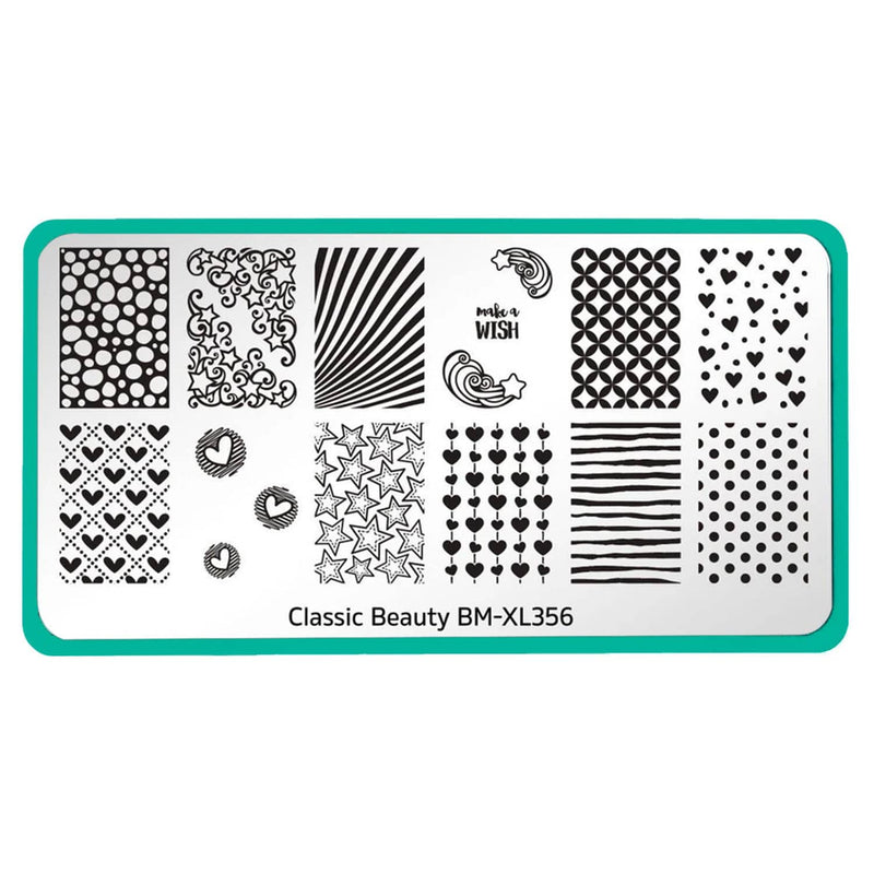 So you think you are more than just a beginner in the nail stamping game? If so, grab this nail art stamping plate we plucked from our Classic Beauty Beginners Box Sets and show us what you got! Make A Wish (BM-XL356) is a nail plate with 12 full nail designs with a plethora of hearts, stars and other adorable patterns.