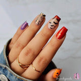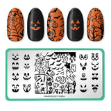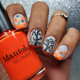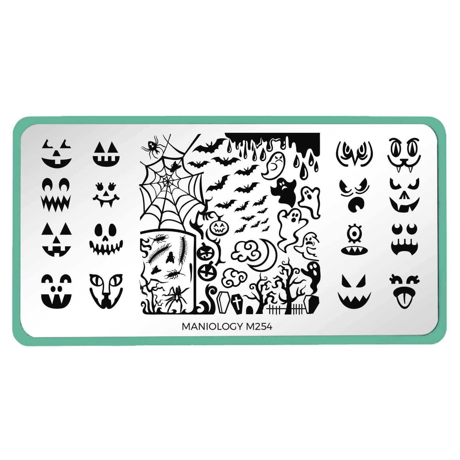 Carve yourself a smile with Playful Pumpkins (m254). This Halloween stamping plate includes spooky jack-o-lantern expressions to light up your night. These adorable and quintessential Halloween designs were originally featured in our square-sized plates. Get creative with funky base colors for a manicure that's totally you.