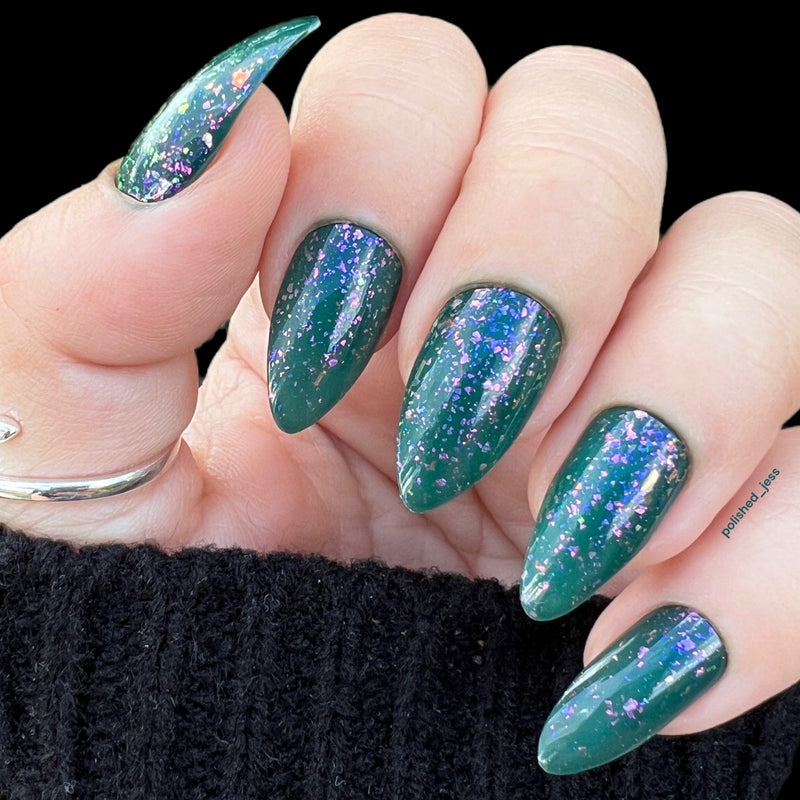 Let your nails flourish like the forest with the enchanting hue of Ivy League (P154). This lush green polish features shimmery jelly flakies. Swipe just a single coat to add just a touch of flakies or build it up for a manicure that's truly mesmerizing.