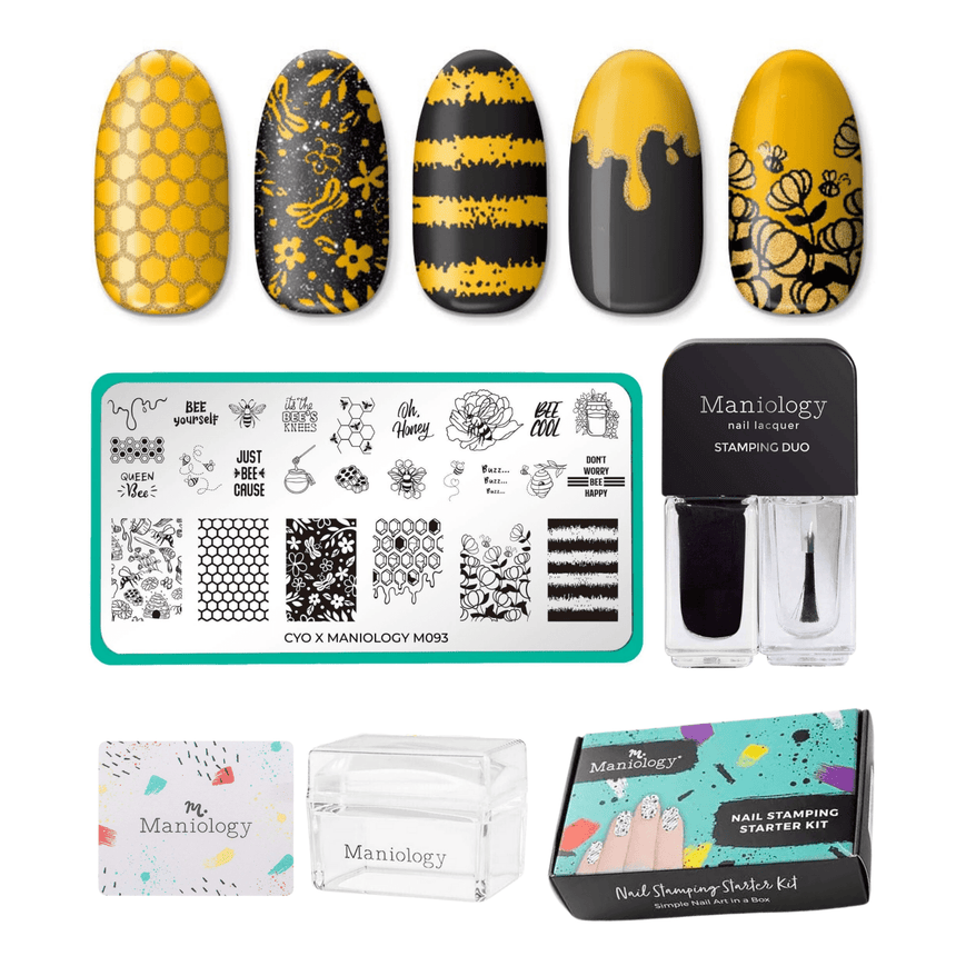 What's all the buzz about? This Busy Bees Nail Stamping Starter Kit celebrates the unique styles and personalities of our worldwide community of nail stampers! The plate featured on this kit was hand-drawn by winners from our Create Your Own Design Contest. This manicure set brings you tons of cute bees-inspired designs to pretty up your nails. Just paint your nails with your favorite nail polish colors and stamp with our highly pigmented polish for bold, vibrant nail art.