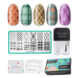 Plaid will never go out of style! This nail stamping starter kit features full nail designs in classic plaid prints like tartan, gingham, glen check, and more. Complete your look with 12 layerable plaid and tartan-inspired nail stamping designs. These timeless patterns are perfect year-round. Just paint your nails with your favorite nail polish colors and stamp with our highly pigmented polish for bold, vibrant nail art.