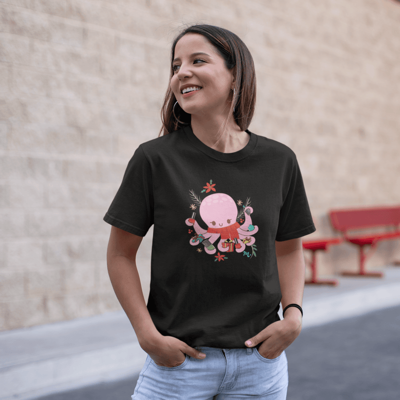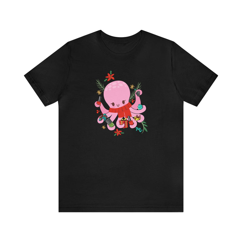 We're all wishing for an extra hand this holiday season! Our Gifted Octopus t-shirt spreads joy and style with gifts and nail polishes in every tentacle! This cute holiday octopus shirt takes Christmas cuteness to a whole new level, bringing festive delight to your seasonal wardrobe. With its soft and comfortable fabric, this Christmas tee is perfect for holiday gatherings or cozy nights in. Wear it or gift it for a boost of happiness, style, and inspiration every day!