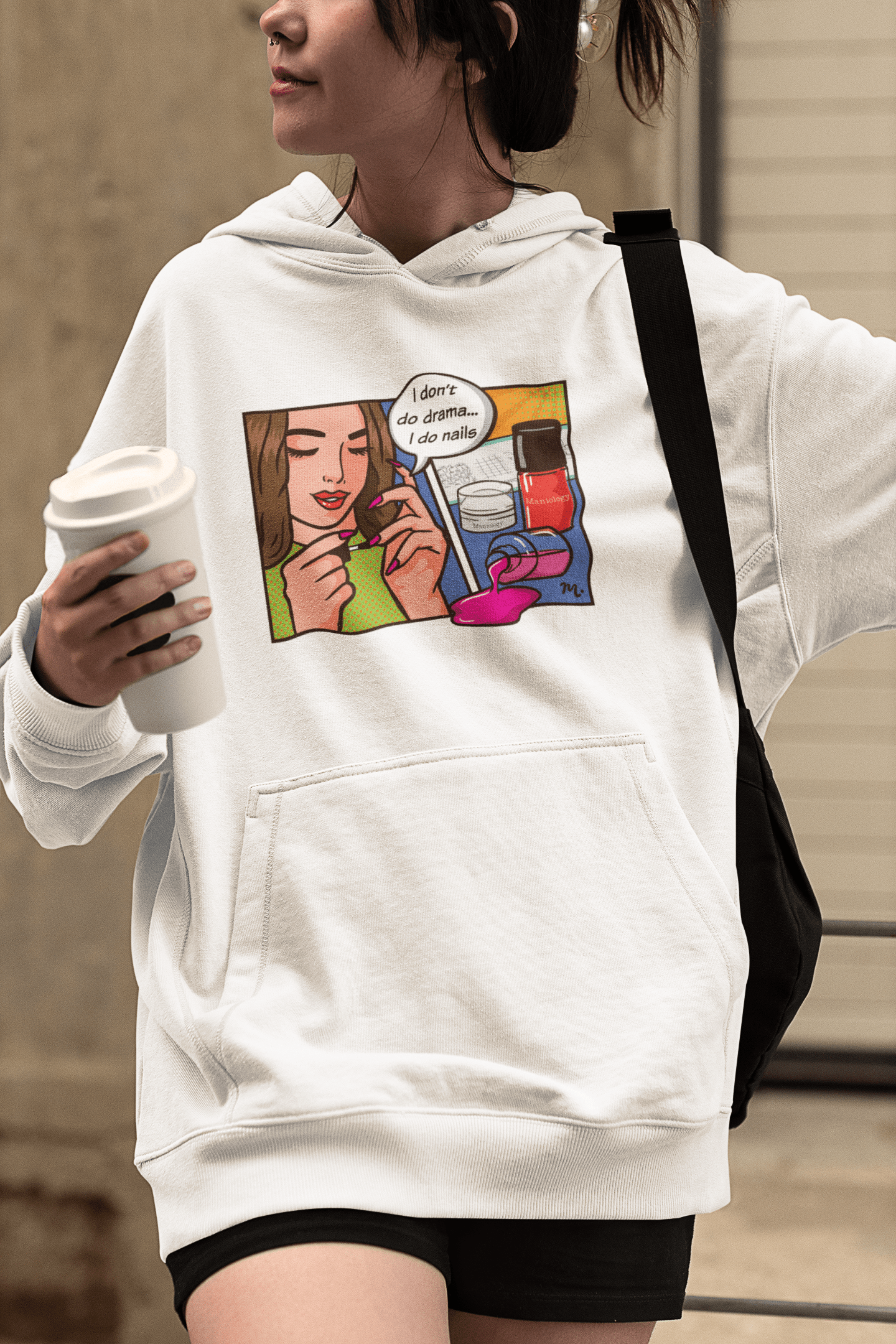 Calling all nail queens! Our "I Don't Do Drama, I Do Nails" hoodie is for any nail enthusiast who knows how to keep things drama-free. With a cute and sassy design, this hoodie is a statement piece that shows off your passion for creativity and your no-nonsense attitude. Made with soft, comfortable fabric, this hoodie is perfect for lounging around the house or running errands in style.