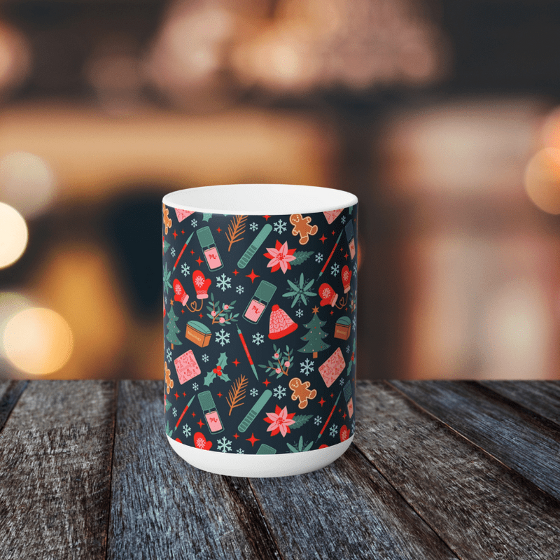 Make your holiday drinks even merrier with our Festively Manicured mug. Enjoy a cupful of joy with this cute holiday mug filled with your favorite nail tools, gingerbread sweetness, and all the festive vibes. Whether you're savoring a spiced holiday latte or indulging in a rich hot chocolate, this mug guarantees a sip of seasonal magic. Add this mug to your collection and start sipping in style!