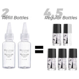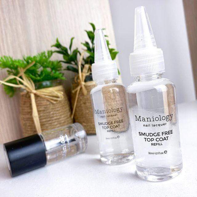 Smudge-Free Top Coat running low? This set comes with two 30ml bottles of our best-selling top coat to keep you stocked up for miles of manicures. Each bottle comes with a narrow twist-top spout to easily refill your empty top coat bottles. (Don't forget to cap them after use to prevent drying out.)