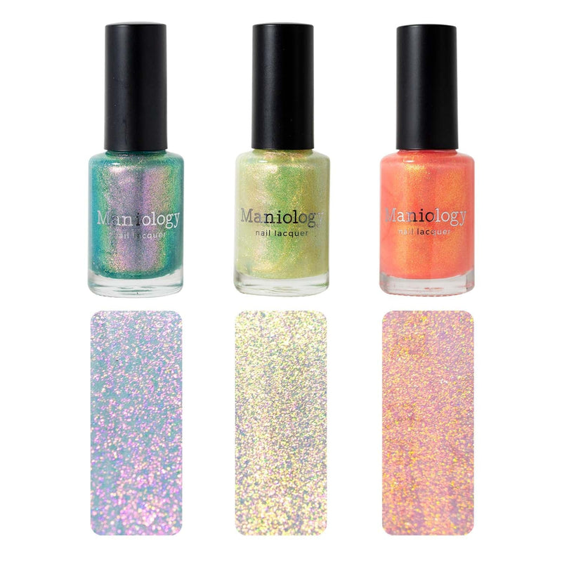 We're sippin' pretty with this tropical polish trio. Each sheer nail polish is filled with glistening flakies and bright, warm hues inspired by Hawaii's delectable drinks. Our Pau Hana set comes in 3 sheer polishes swimming with glistening iridescent flakies. Hold your glass up and say alohaaa to a new manicure worth showing off. Each bottle contains 13ml of nail polish.
