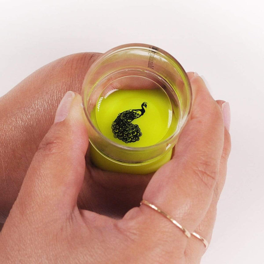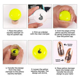 - Carefully place the squishy yellow stamper head into the holder and stamp onto your nails.