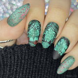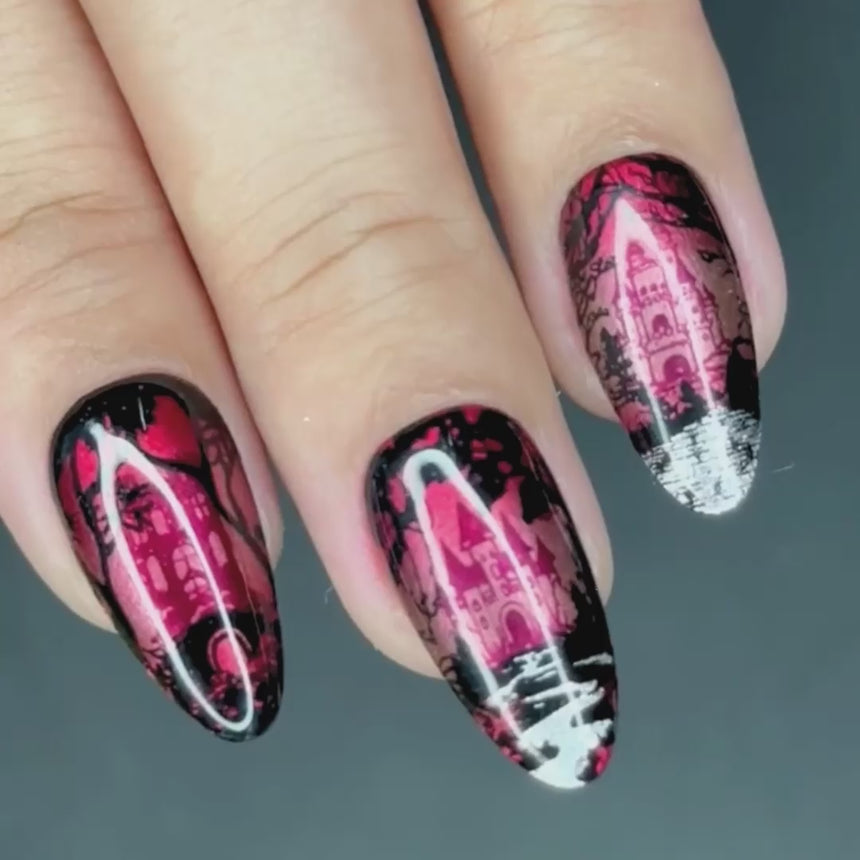 Layer up, my liege—your fantasy fortress awaits! Our Castle’s Keep stamping plate invites you into a kingdom of shadows and majestic mystery. Packed with layerable designs including enchanted castles, mysterious towers, looming castle silhouettes, and moody landscape scenes, you can easily build a custom scene on every nail. This plate is perfect for Halloween nails, fantasy nail art, gothic looks, or anyone whose style leans a little dark and mystical. Take the crown and rule your own nail kingdom.