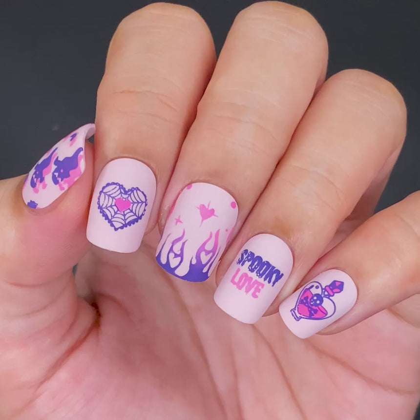 With our Batty Love stamping plate, we know you'll create a mani that you'll love to death! This stamping plate is filled with spooky cute patterns to help you express the darkness in your heart. With full nail, buffet style, and accent designs, you'll have endless nail art options perfect for Valentine’s Day or your next date with Dracula.