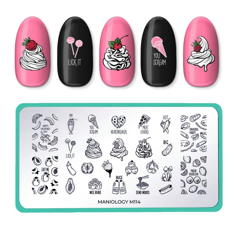 You know how much we looove food.😜 This Forkin' Love Ya (m114) stamping plate is filled with some enticing food porn. Hungry? We've got something for you to nibble on. Meat Lovers, come join our sausage party, and when you're in the mood sweets, quench that thirst with a few fresh ripe, juicy fruits. This V-day, you'll have a mani that will leave you lookin' like a snack. What...? Get your mind out of the gutter! It's just food.