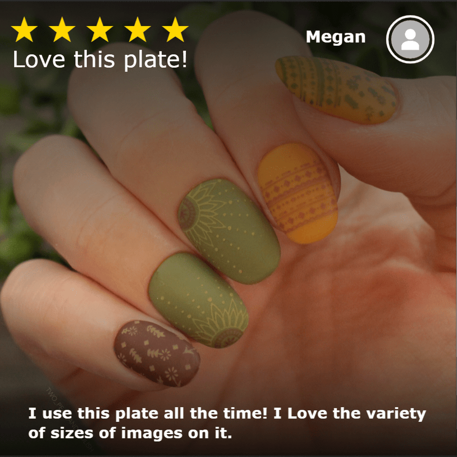 Relax in your own Moroccan riad with our Casablanca (m015) nail stamping plate. Ornate geometric mosaic patterns, accent tile designs, and fun fringes will help to brighten up your day and accessorize your outfit. Dress up your nail art with a few simplistic accents or completely let go with wild colors and design combinations. The possibilities are endless! As with all of our nail stamping plates, we use laser-engraved stainless steel, so you'll receive the highest quality and most intricate results. We love to hear from you! Create something that's totally you-nique and share it with us on social media!