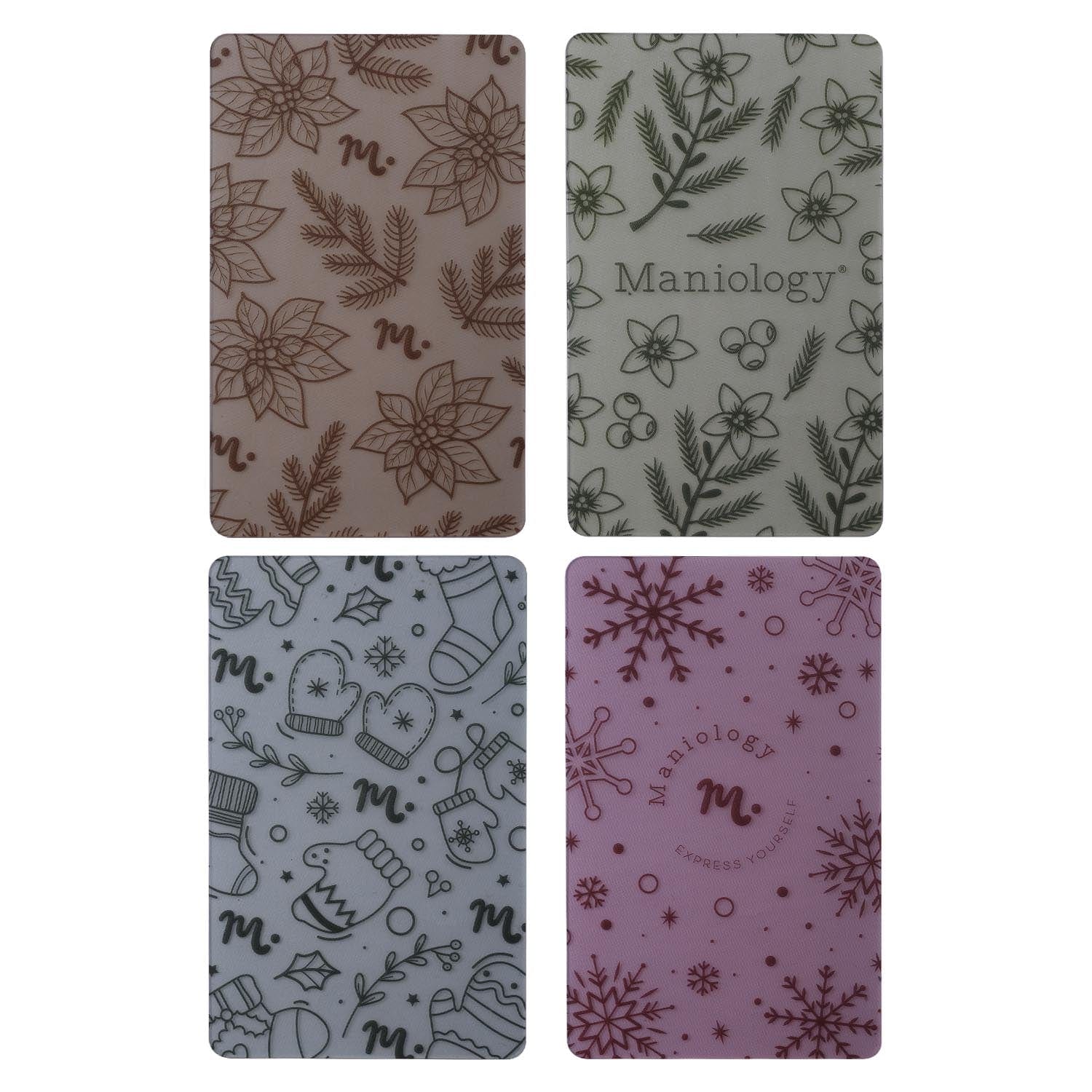 Clean swipes, festive vibes! Get your nails holiday-ready with our limited edition Holiday scraper cards. This collectors set includes 4 full-sized scraper cards with charming Holiday designs of winter botanicals, snowflakes, and festive ornaments to match our new line of stamping plates. Scrape with a clean swipe using the 0.5 mm thin edge that evenly disperses just the right amount of polish onto your plate. With every swipe, you'll be perfectly priming your nails for a delightful holiday makeover.