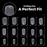 300pcs Full Cover Nail Tips for Extension in 15 Sizes - Short Squoval