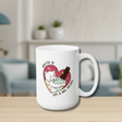 The mug is made up of ceramic; 15oz in size; rounded corners; with a C-handle. *This item is made to order and fulfilled by our printing partner. Ship within USA only.