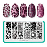 Take a walk on the wild side with this revamped classic. We've brought back designs from some of our older circle plates and reunited them to bring you Animal Instinct. Dress up your outfit with 12 full nail stamping designs inspired by classic animal prints. Get wild with animal prints like cow, zebra, cheetah, snake, and more.