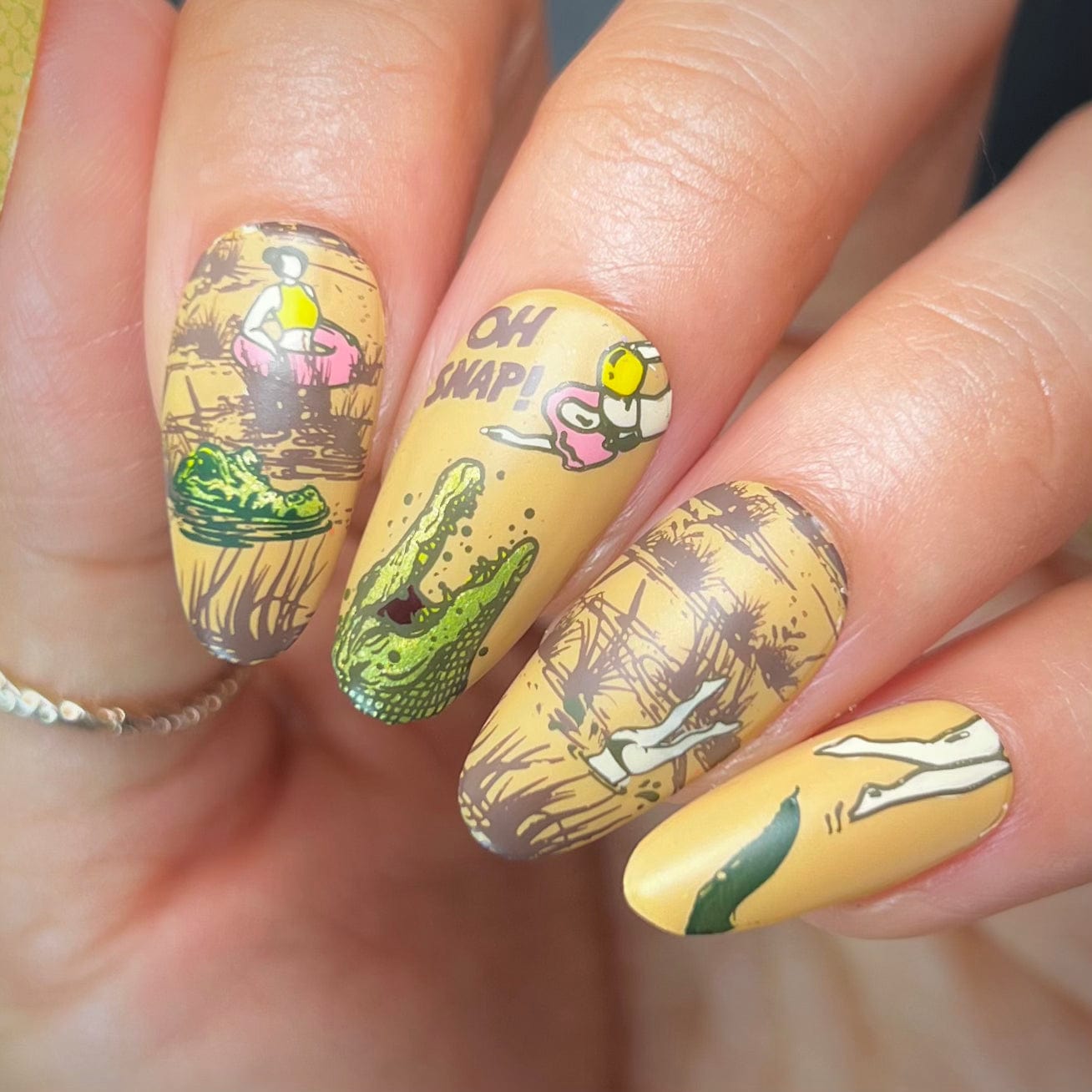• SNAPPY TIPS: Mix up gator jaws, scaly patterns, cool alligator silhouettes, and lush swamp backgrounds. Try layering colors to make your alligator nails really stand out!