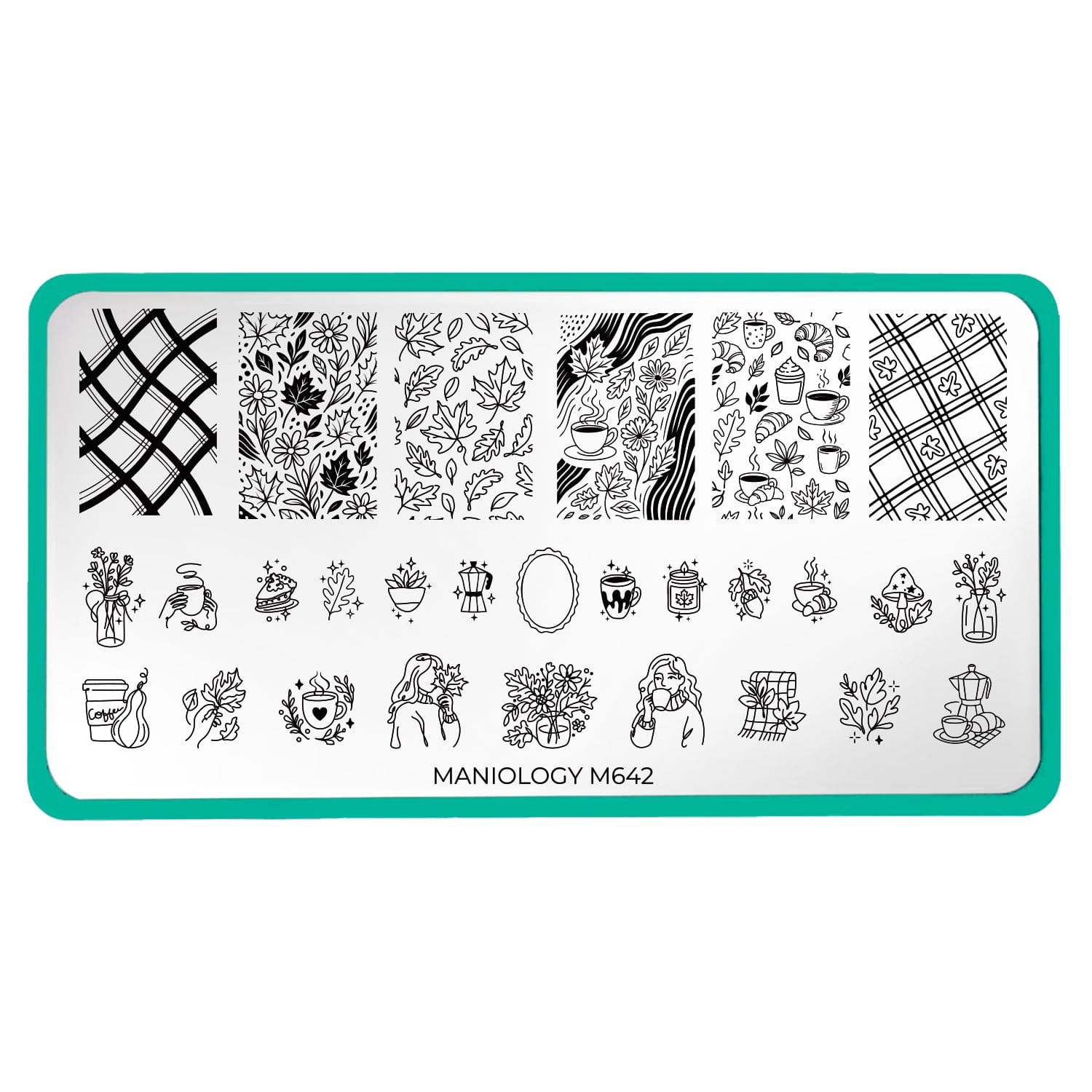 Sweater, cider, leaves, and your nails looking seasonal and stylish! Our Autumn Vibes stamping packs all your fall favorites — falling leaves, acorns, mushrooms, steaming coffee, pie, croissants, cozy sweaters, and classic plaid patterns. With every design, you can bring that crisp, sweater-weather feeling. Cozy, warm, and delightfully snug, it's perfect for creating seasonal nail designs that look and feel like comfort in a cup. Time to stamp on those fall vibes and create autumn nails made for cozy moments.