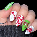 Gear up your nails with our winning lineup of exciting and thrilling designs inspired by America's favorite pastime. Batter Up (m376) stamping plate is a collection of baseball inspired elements such as baseballs, bats, caps, gloves, player silhouettes, and more. This stamping plate offers a grand slam of creativity with a wide array of full nail patterns and accent designs. Whether you're a die-hard fan or just enjoy the sporty vibes, these designs will make your manicure a home run!