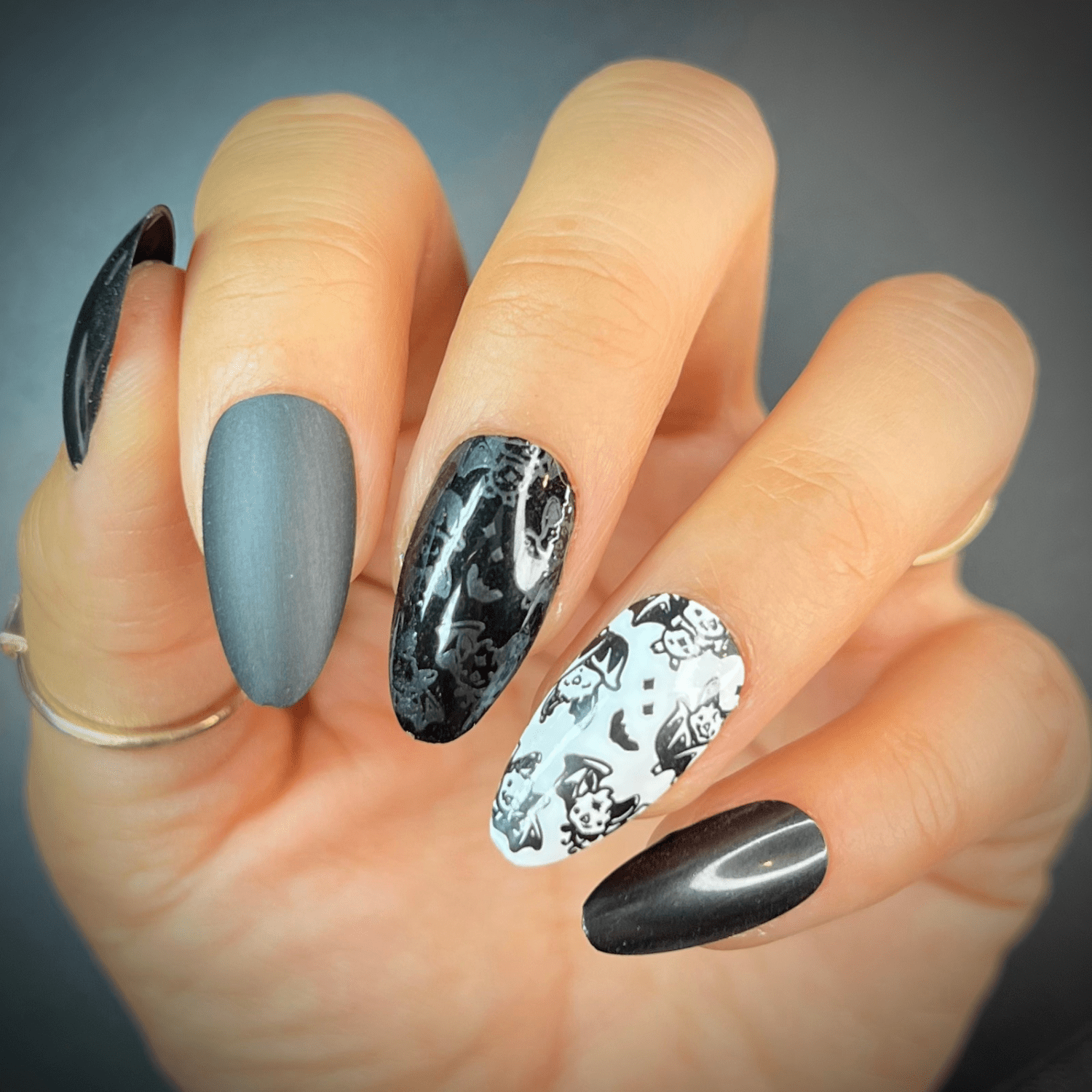 Batty (B489) is a gunmetal silver stamping polish with a shell-like finish. This mysterious dark hue, reminiscent of a moonlit Halloween night, boasts a bewitching finish that glides smoothly onto your nails. Stamp over your favorite base color or paint over the entire nail for spooky Halloween nails.