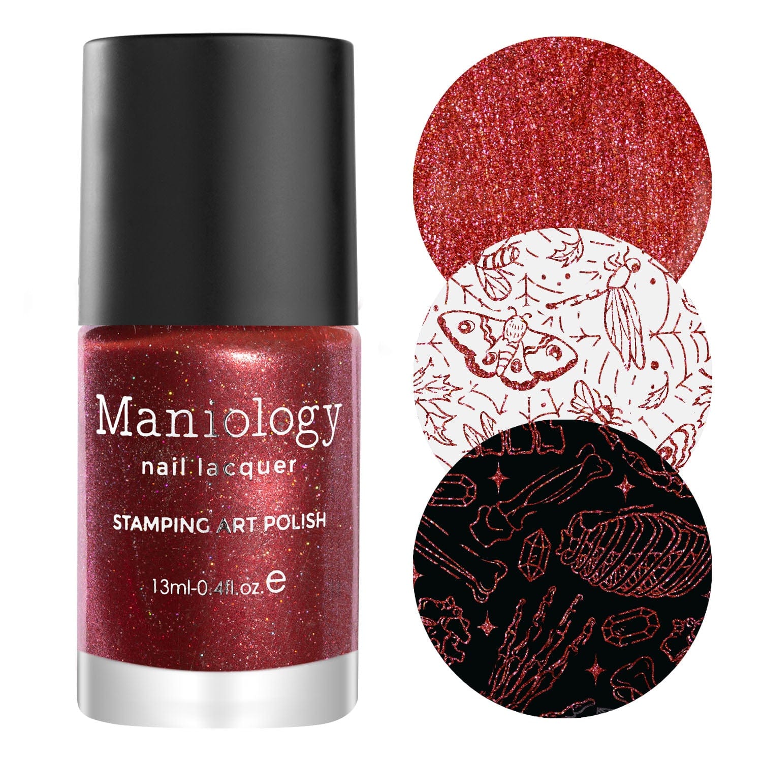 Blood Bender (B445) is a deep red stamping polish with a beautiful holographic finish. Stamp this bold polish over your favorite base or paint it all over for dramatic effect. This highly pigmented polish is great for any nail project.
