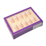For Nail Glue: Apply an even layer of glue to natural nails and the back of press-on. Place press-on nails with cuticle line and apply. Press and hold for 10-20 seconds to secure.