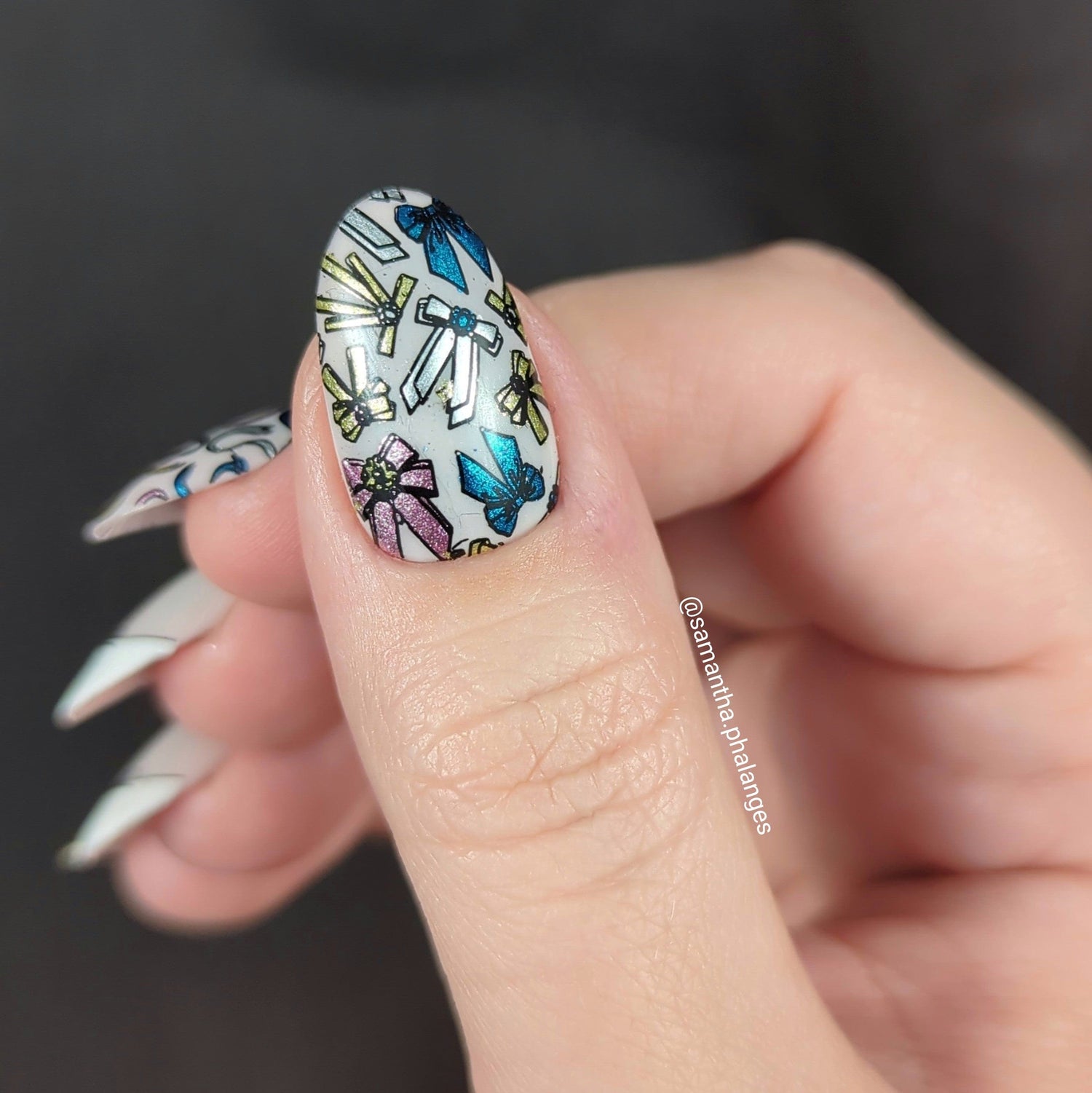 With our Bows & Ribbons nail stamping plate, you're the gift! With designs ranging from neatly tied cute little bows to playfully swirling ribbons, your nails are about to get a major upgrade. No need to bow down to beautiful nails, just stamp and slay. Whether you're into full-on drama or subtle accents, this ribbon stamping plate has your back. It's knot your average mani!