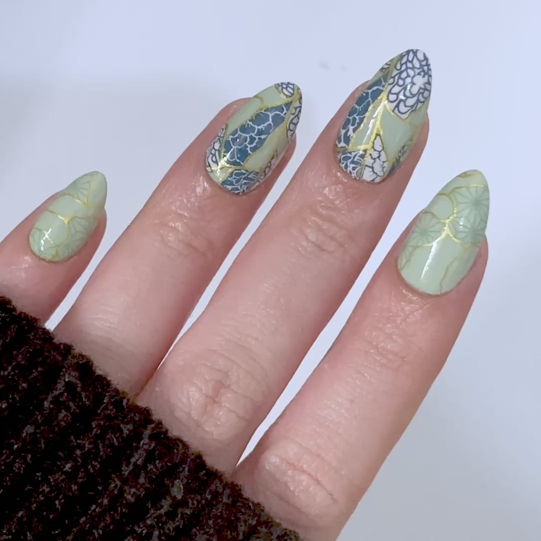 Because flaws can shine too! Inspired by the Japanese art of Kintsugi, our Broken and Beautiful stamping plate transforms gold-repaired ceramics into elegant porcelain nail art. This plate celebrates imperfection with intricately designed porcelain patterns and broken ceramic details, complete with crack lines that mimic gold repairs for a realistic kintsugi effect. Layer the cracked lines over porcelain patterns to create beautifully cracked pottery nails in minutes.