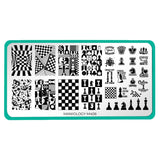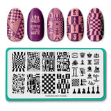 Turn every move into a fashionable one with our Chess Master stamping plate! Whether you're a chess champ or just here for the fun, this plate lets you master the game of style. Kings, queens, and knights await your creative moves. With classic chess pieces and board designs in a variety of full nail and accent styles, you'll reign as the queen of style.