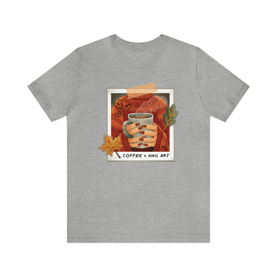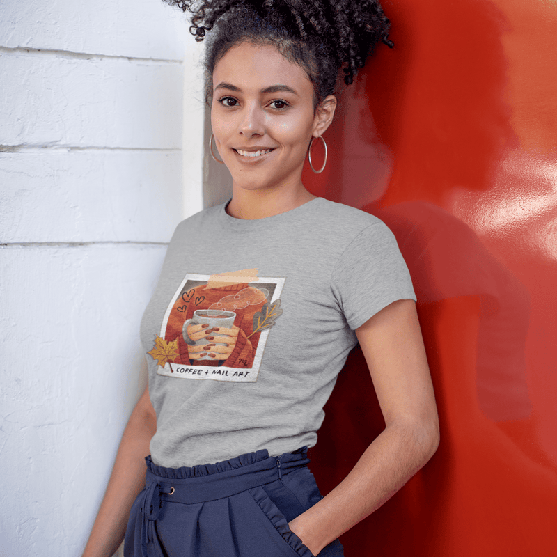 Warm brews and autumn hues - our Coffee and Chill t-shirt nails the fall vibe! Featuring a stylish manicured hand cradling a cup of steamy PSL with a delightful autumn vibe, this tee exudes fall's seasonal charm. With its soft and comfortable fabric, this autumn coffee shirt is perfect from laid-back coffee shop visits to leafy park strolls. Wear it for a boost of confidence, style, and inspiration every day!