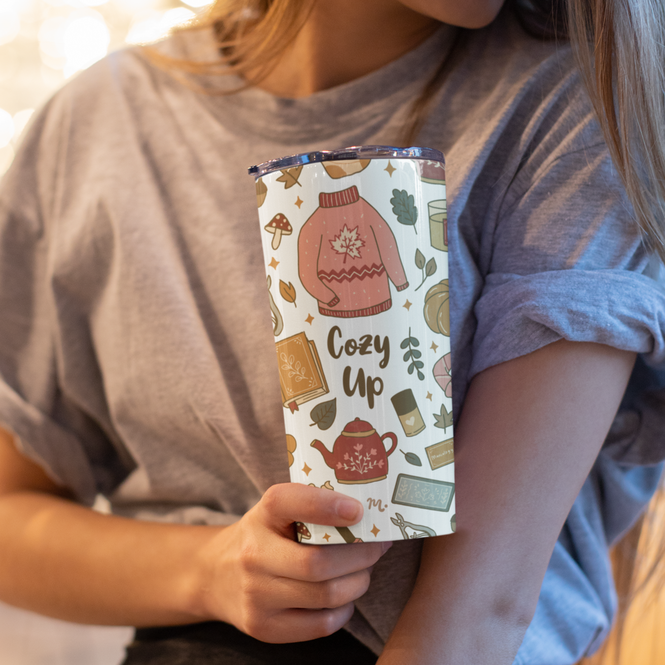 A cozy accessory that pairs perfectly with your flannel shirts and autumn adventures! Our Cozy Fall Favorites tumbler combines all your autumn essentials into one delightful fall design. From sipping pumpkin spice lattes to enjoying crisp, cool evenings, this cozy fall tumbler will keep your beverage warm and your fall spirit alive. With durable build and spill-proof lid, it's the perfect companion for your daily adventures, ensuring you stay hydrated in style!