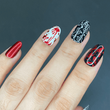 We've solved the mysteries of spooky nail art! Our Crime Scene nail stamping plate narrates the suspense of crime investigation with blood splatters, evidence, forensic elements, and more. Each scary nail design is a puzzle piece that fits perfectly into your creative crime scene. Whether you're exploring full nail patterns or adding accents of suspense, this plate opens the door to a nail art journey that's shrouded in mystery.
