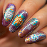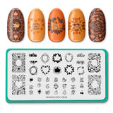 Our Fall Frames stamping plate serves up a full harvest of seasonal goodness. Create gorgeous fall nail art with leafy frames, rustic branches, and cozy fall wreaths that capture the perfect autumn manicure aesthetic. These designs offer rustic charm and cozy detail, so you can almost feel the rustling of leaves every time you glance at your nails! Whether you're going for an earthy, neutral vibe with a subtle fall accent or a full-on foliage frame, this plate provides a rustic-chic look that’s perfect for all your fall festivities or your Thanksgiving feast.
