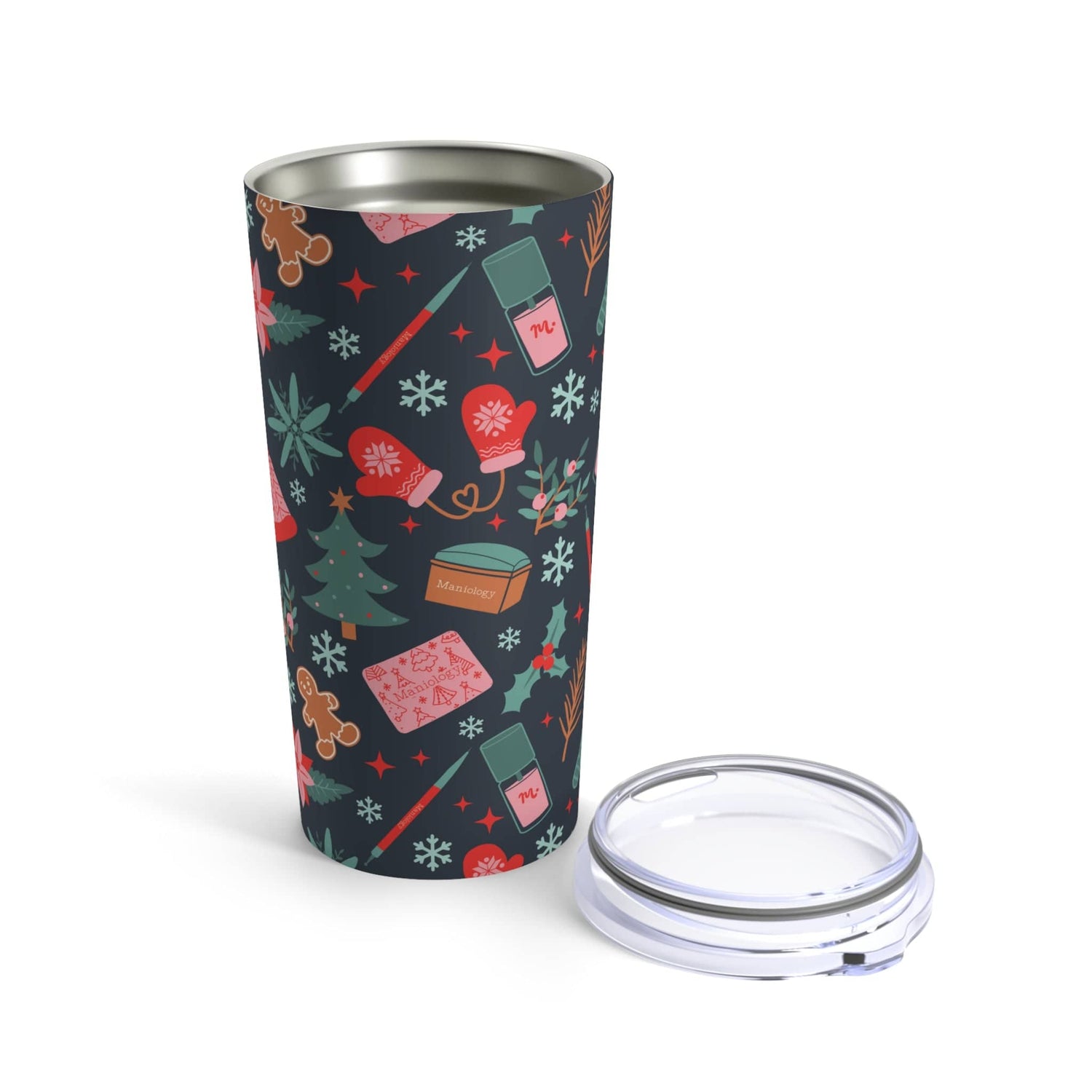 Your favorite drink deserves a holiday makeover, and our Festively Manicured tumbler is here to glam it up. This mug features a delightful design filled with nail tools, gingerbread sweetness, and all the festive vibes, perfect for those who like their drinks as festive as their spirits. From refreshing cold drinks to your favorite hot beverages, this holiday tumbler elevates your daily sips with festive charm. With durable build and spill-proof lid, it's the perfect companion for your daily adventures, ensuring you stay hydrated in style!