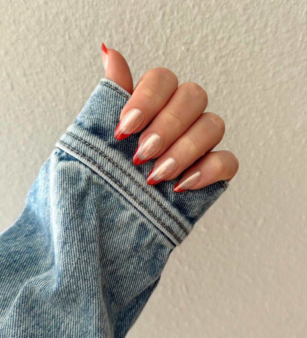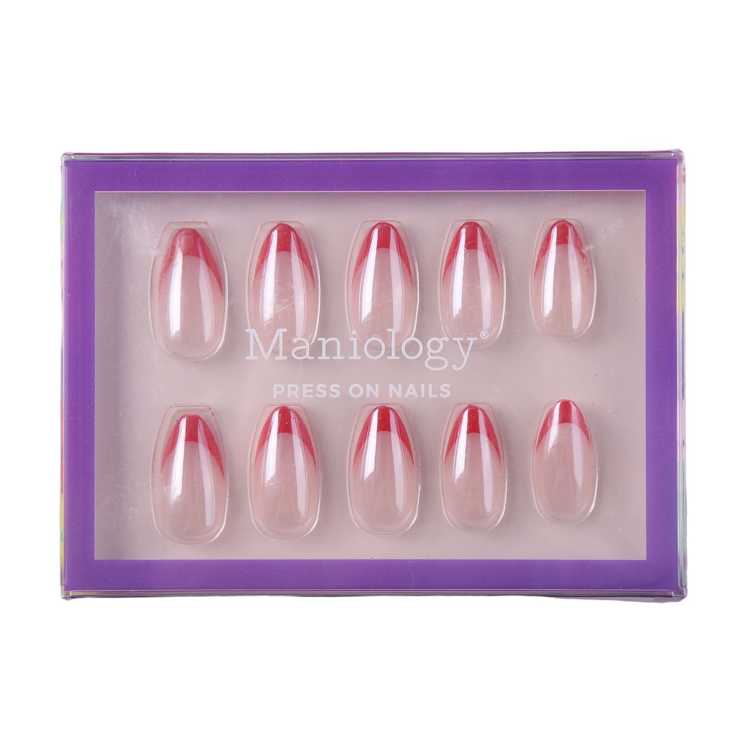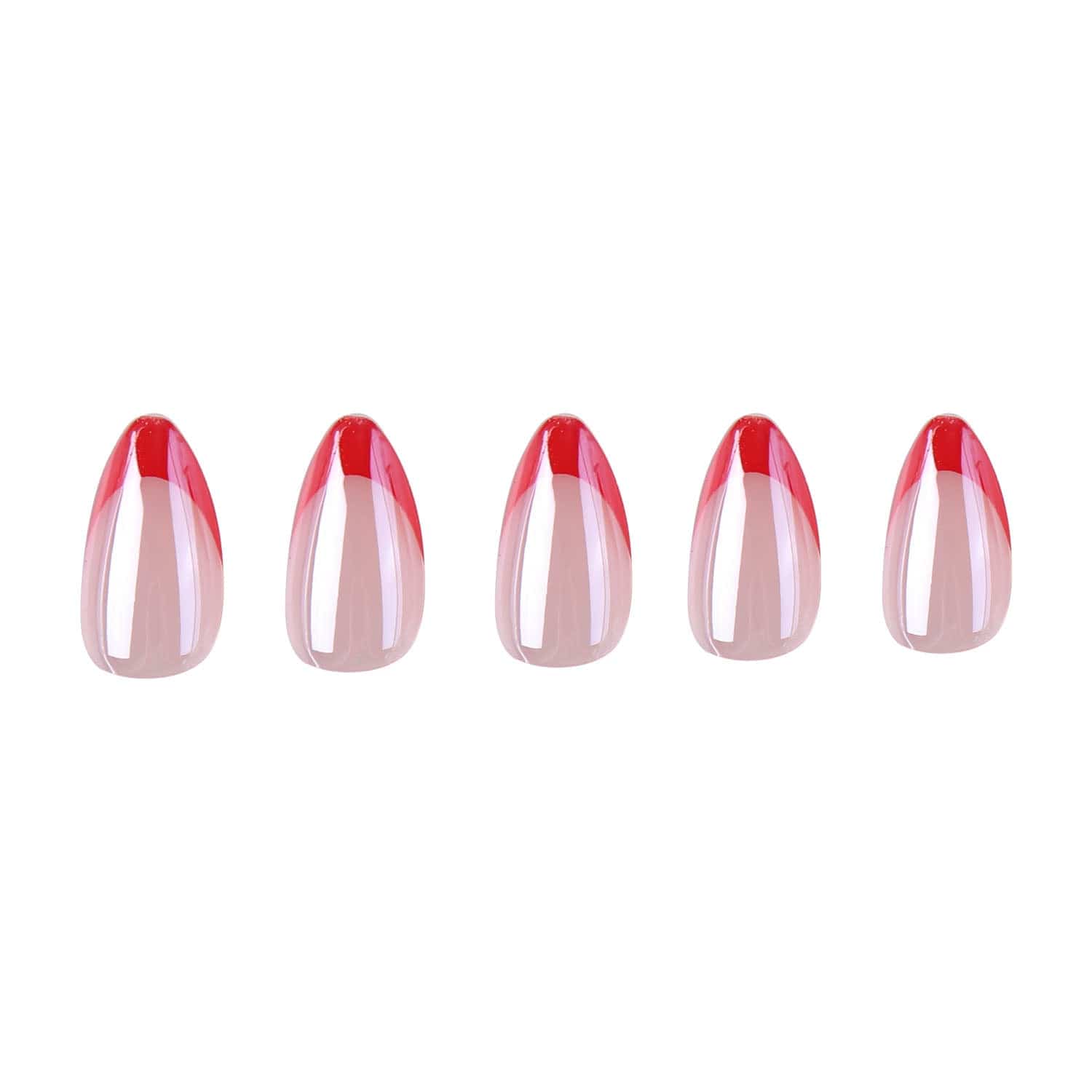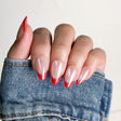 Our Fiery French Press On Nails are perfect for when you want to keep it classy but still make a bold statement. Their short almond shape is flattering, and the fiery red tips add just the right amount of boldness.