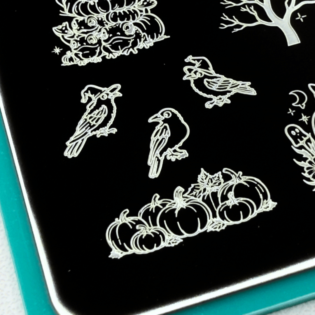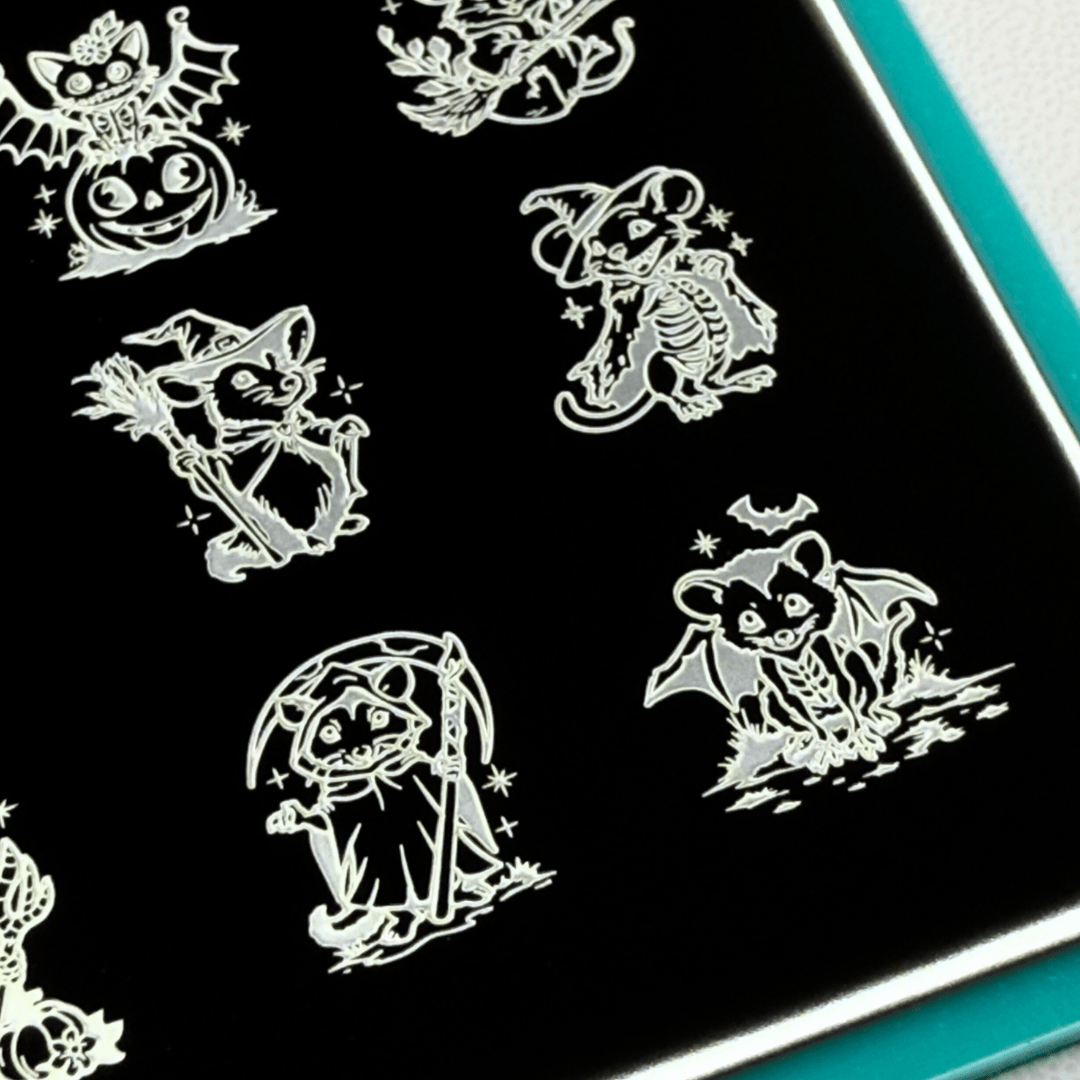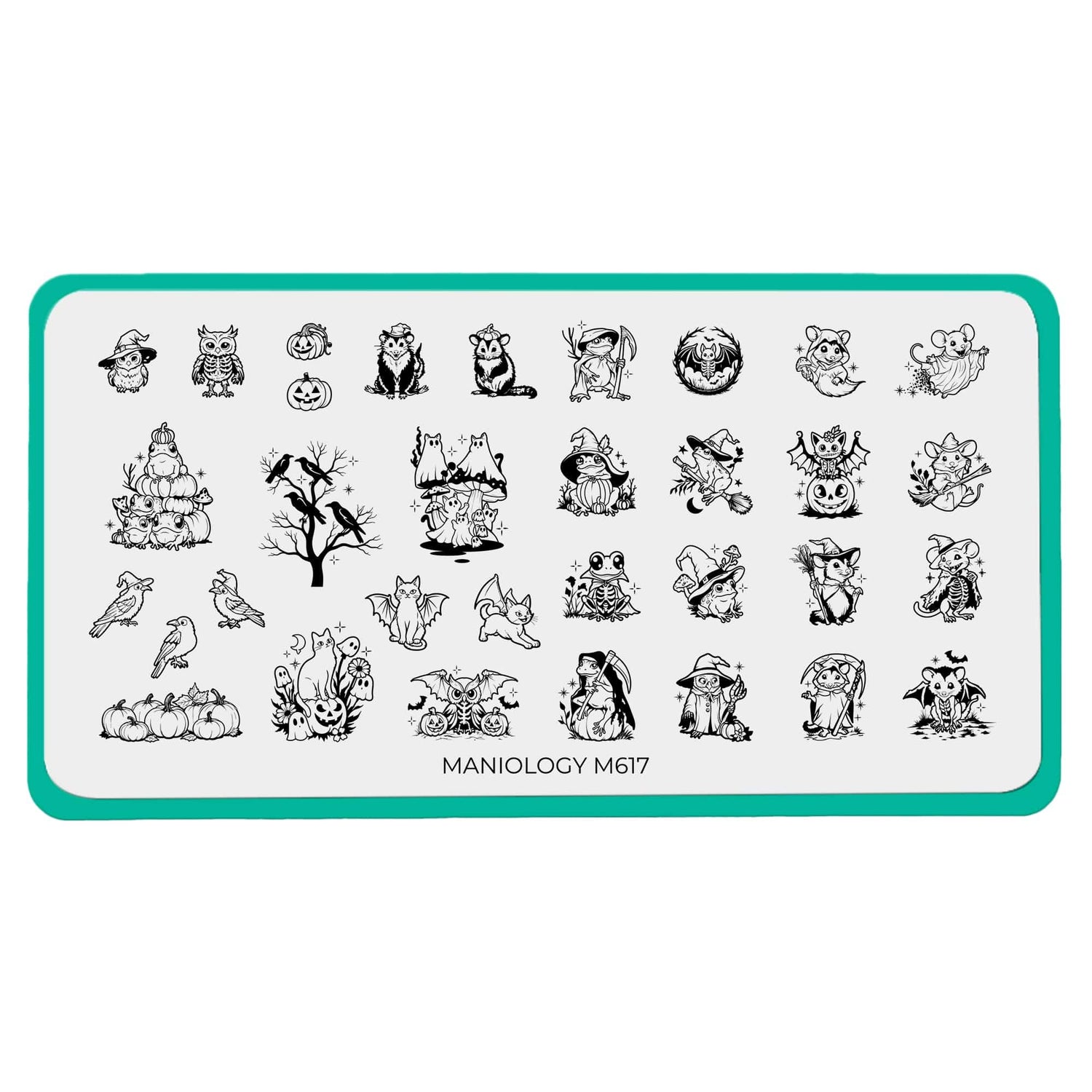 Charm your nails with some witchy cuteness using this uniquely enchanted plate. The Friendly Familiars stamping plate features frightfully adorable animals like owls, bats, toads, mice, and mystical cats, in charming witchy styles, paired with enchanted garden touches like mushrooms and pumpkins. Whimsical, magical, and just a bit mischievous, perfect for whipping up spooky Halloween nails.