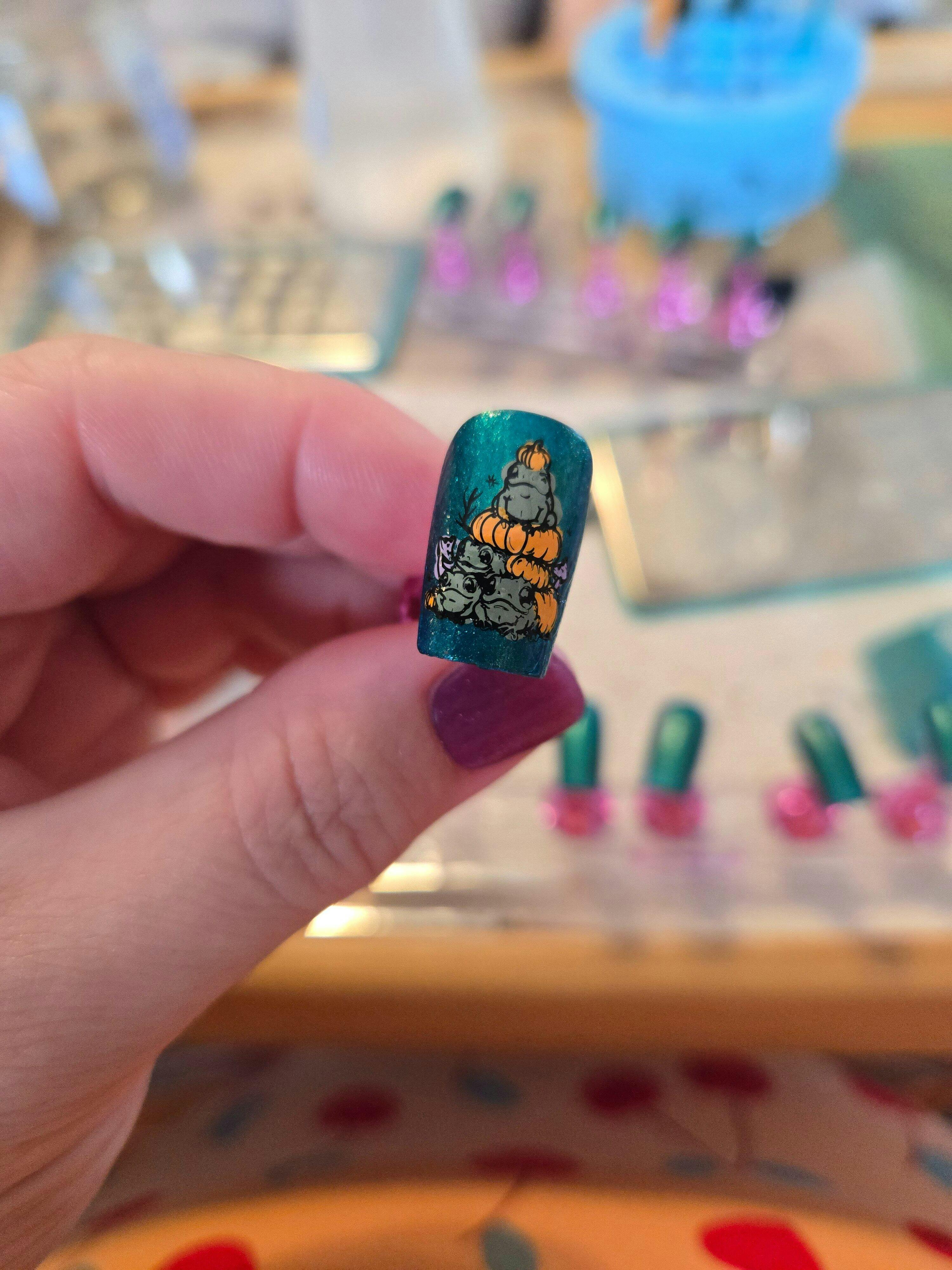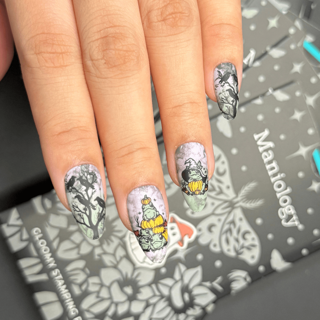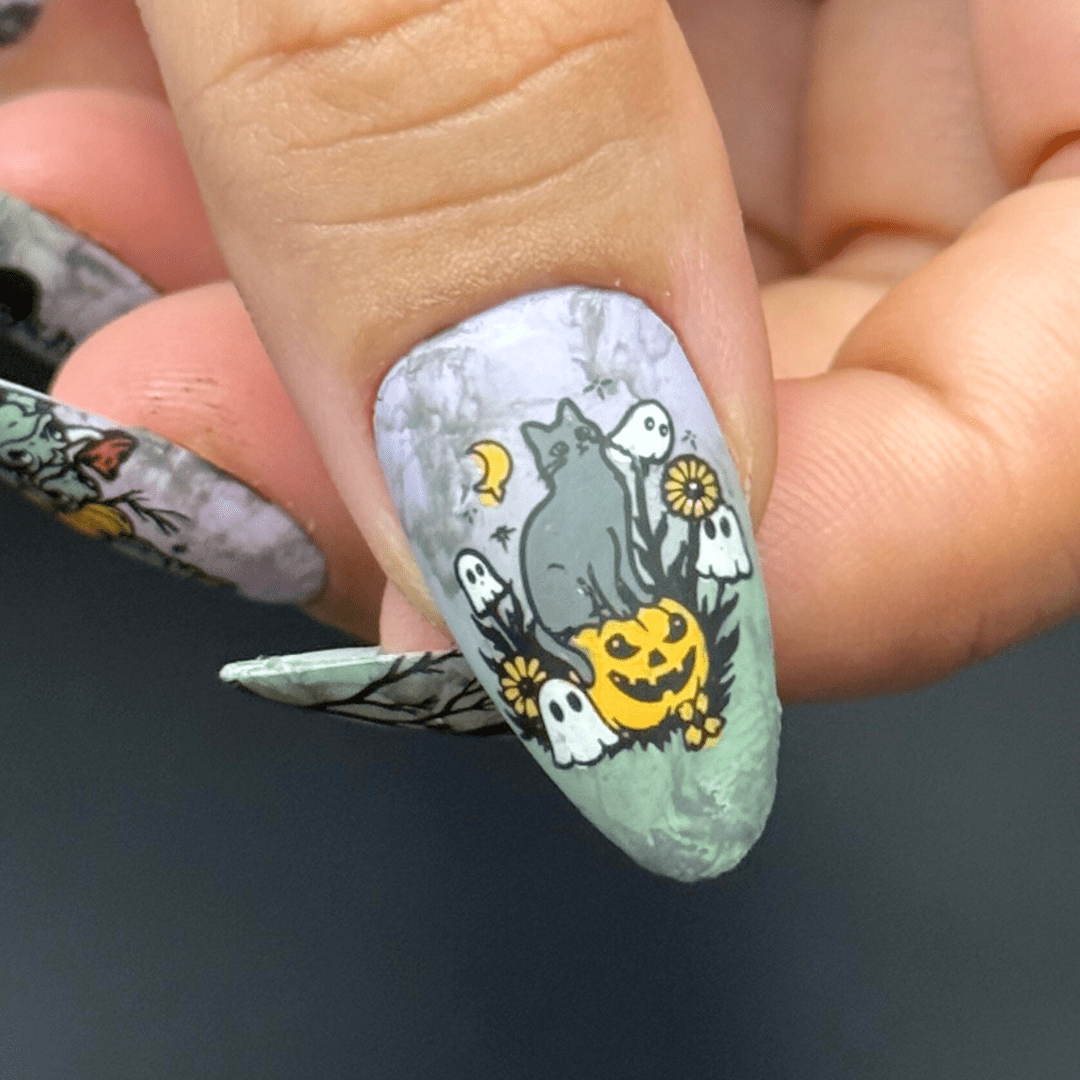Charm your nails with some witchy cuteness using this uniquely enchanted plate. The Friendly Familiars stamping plate features frightfully adorable animals like owls, bats, toads, mice, and mystical cats, in charming witchy styles, paired with enchanted garden touches like mushrooms and pumpkins. Whimsical, magical, and just a bit mischievous, perfect for whipping up spooky Halloween nails.