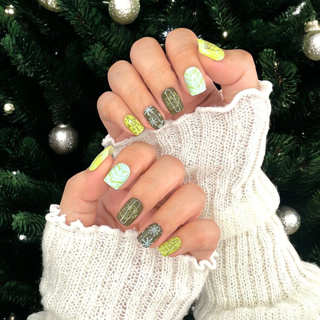 These cute little critters aren’t just for your Christmas tree—they’re ready to frolic on your nails! Our Frosty Friends stamping plate brings a whole crew of adorable, kawaii animals in full holiday spirit! Featuring lovable creatures from a snuggly bear and a cute elephant, to a curious cat and even a reindeer pal, this plate guarantees smiles and compliments at every holiday party. Alongside the adorable animals, you’ll find full-nail designs filled with snowflakes, festive trees, and holiday ornaments. It’s the ultimate seasonal stamping plate for anyone who loves cute holiday animal nails.