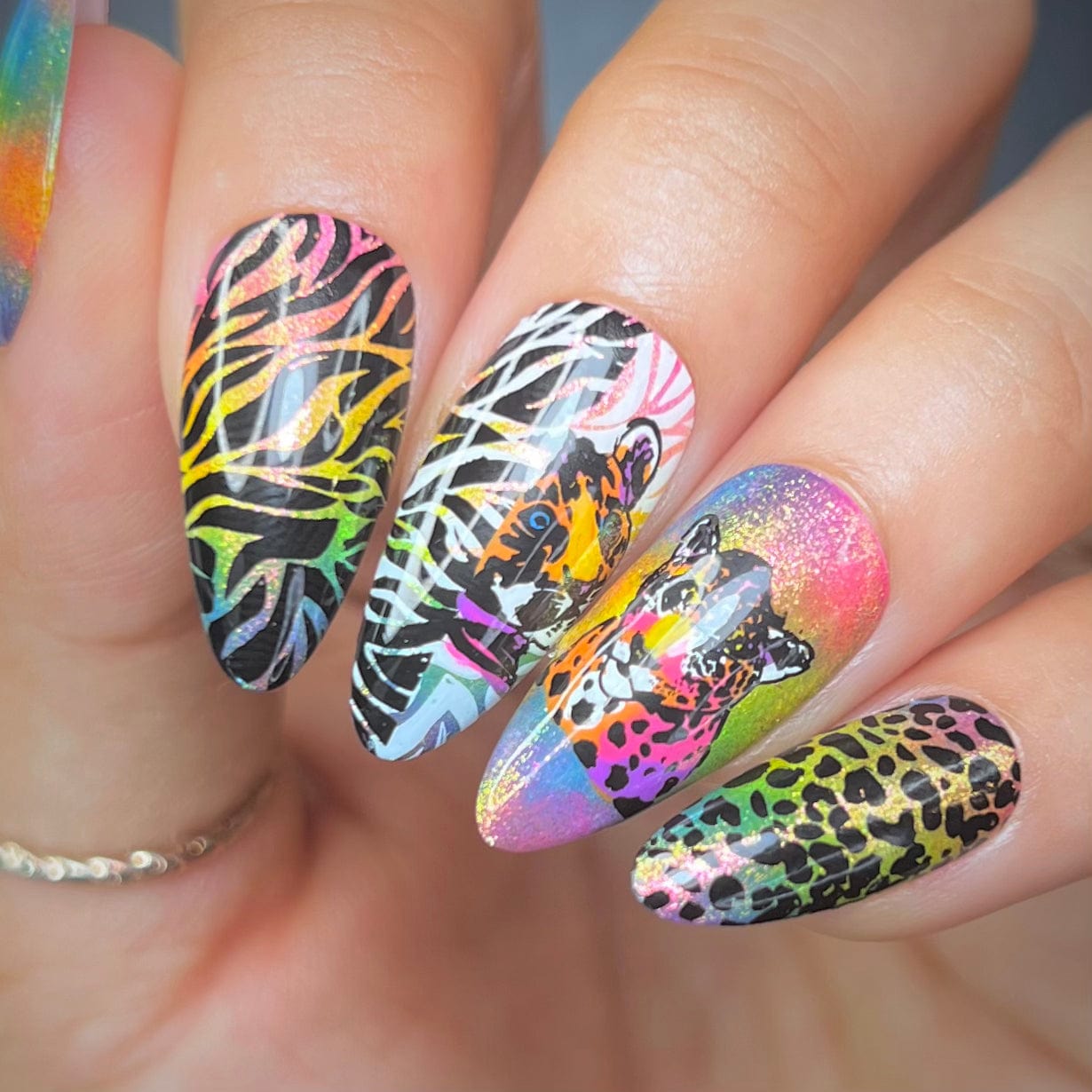 • RAINBOW SAFARI: Live your childhood dreams with throwback 90's nail designs, inspired by the magical world of Lisa Frank.