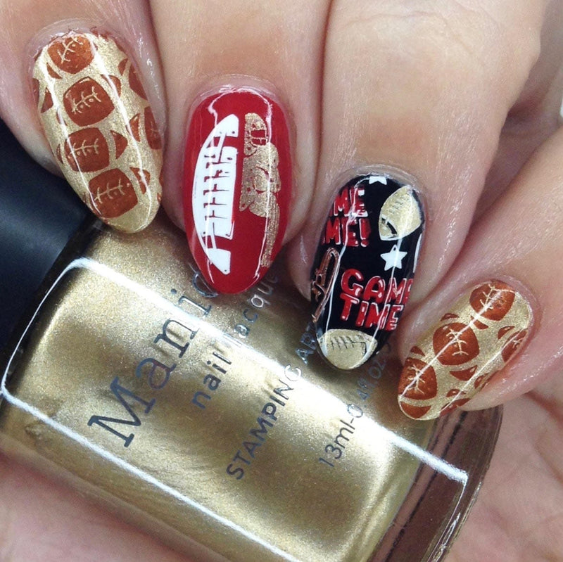 • ALL OUT: Go all out as you stamp full patterns or add accent design to your nails with this football themed plate.