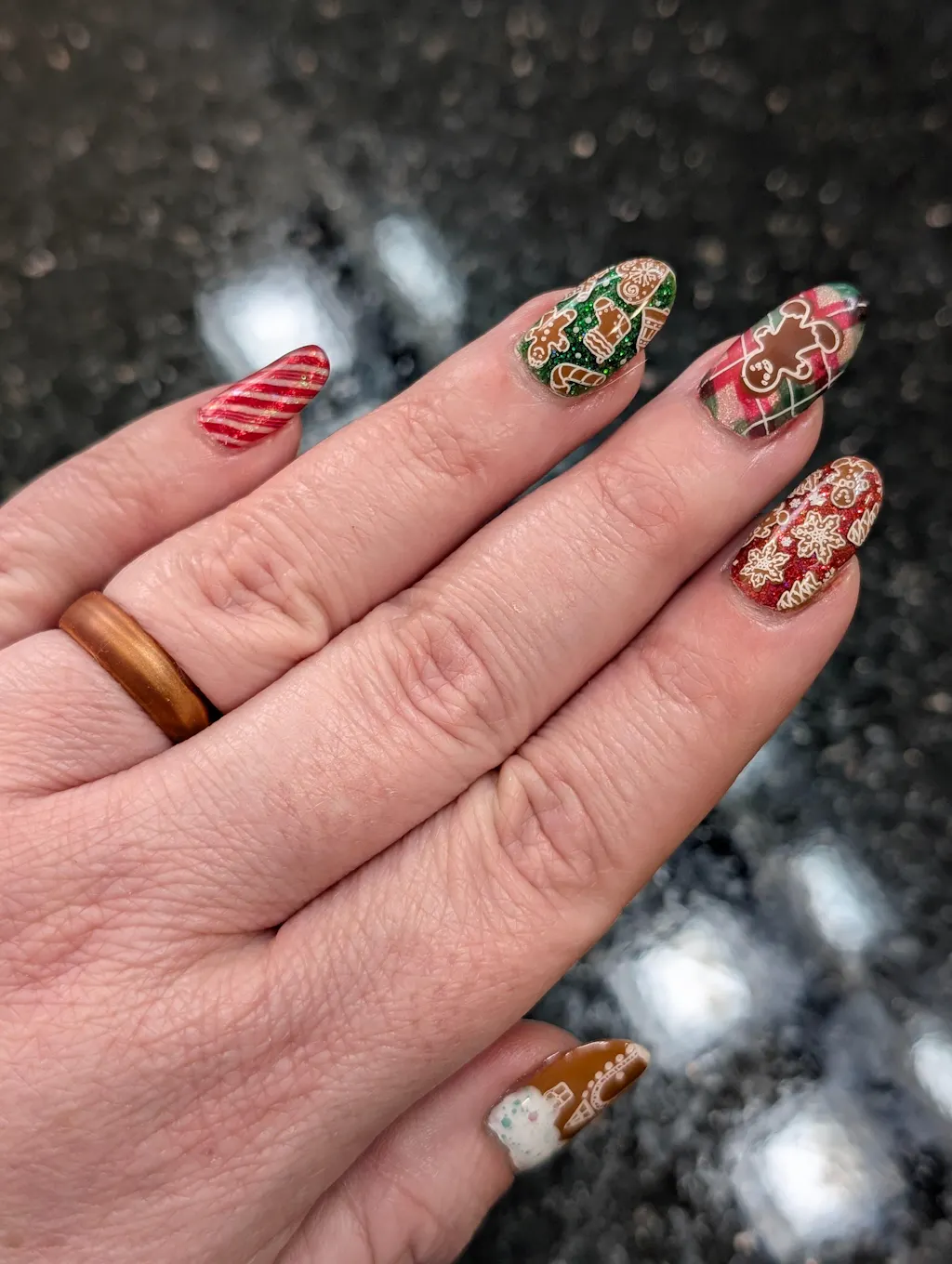 It's time to bake up a holiday manicure that's warm and sweet with this Gingerbread stamping plate. It's packed with sugary cookie nail designs, perfect for the holidays including gingerbread cookies, candy canes, icing swirls, hot cocoa mugs, and more. With full nail patterns, accent designs, and layerable options, you'll have endless fun creating gingerbread nail art.