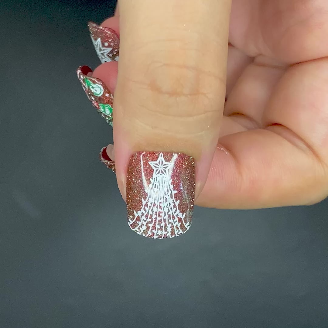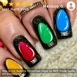 Flick the switch on festive holiday nails! With our Gleaming Lights stamping plate, you'll be wrapped with the joy and sparkle of the holiday season. From twinkling string lights to radiant starbursts, these Christmas nail patterns will have your nails glowing with holiday cheer. Bursting with full nail, accent style, and layer-able designs, this plate will turn your manicure into a dazzling light show. 'Tis the season to sparkle!